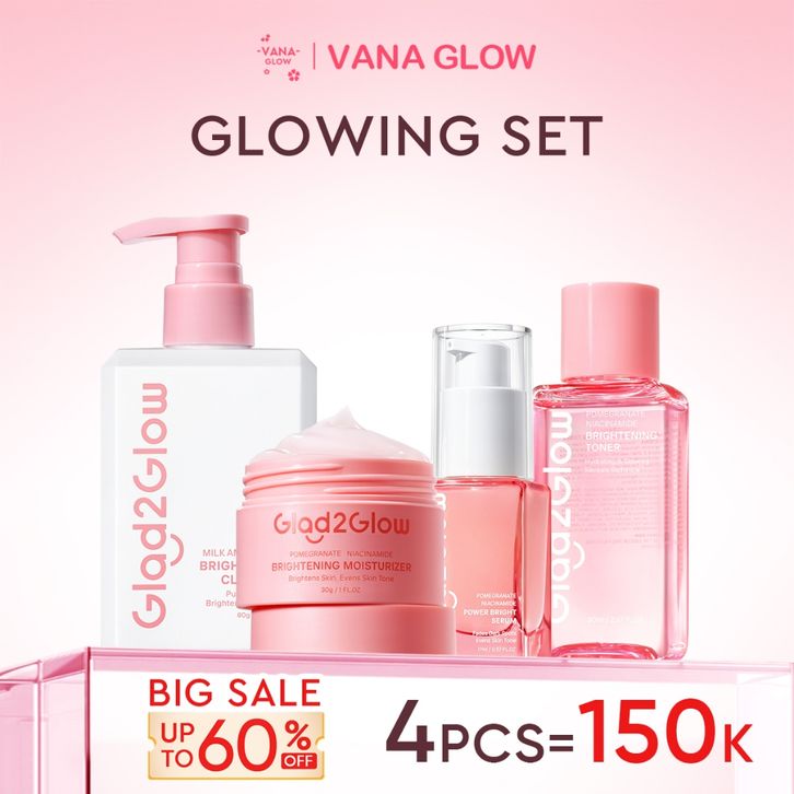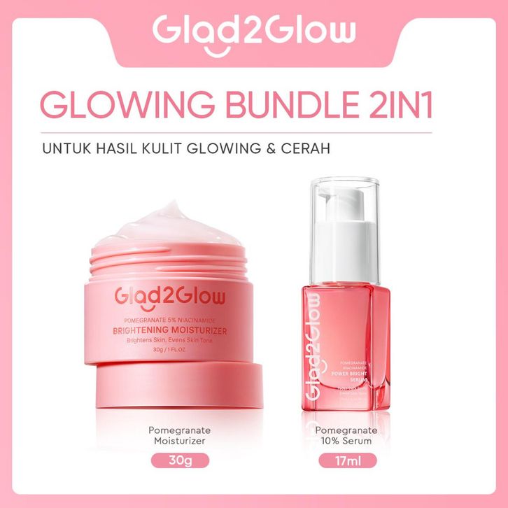 Paket Hemat Putih Wajah Glad2Glow Glowing bundle all in1 - 2/3/4/5 PCS Skincare Paket-Brightening toner+Brightening M