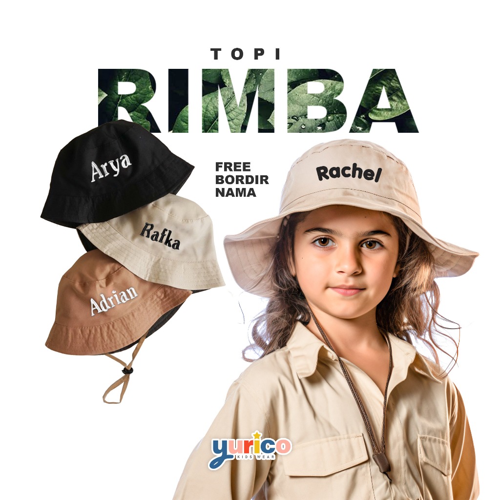 Topi Rimba Anak Free Bordir Nama Laki Laki Perempuan
