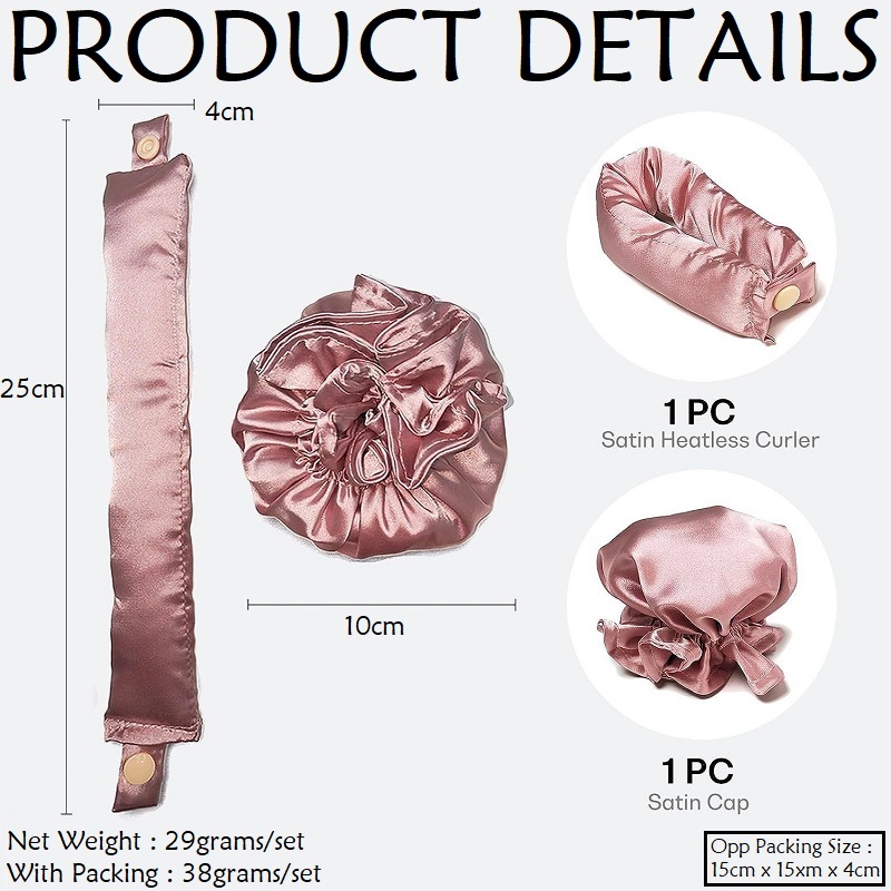 Jepit Rambut Alat Roll Pengeriting Satin Heatless Overnight Curling Set with Hair Caps AHCS002