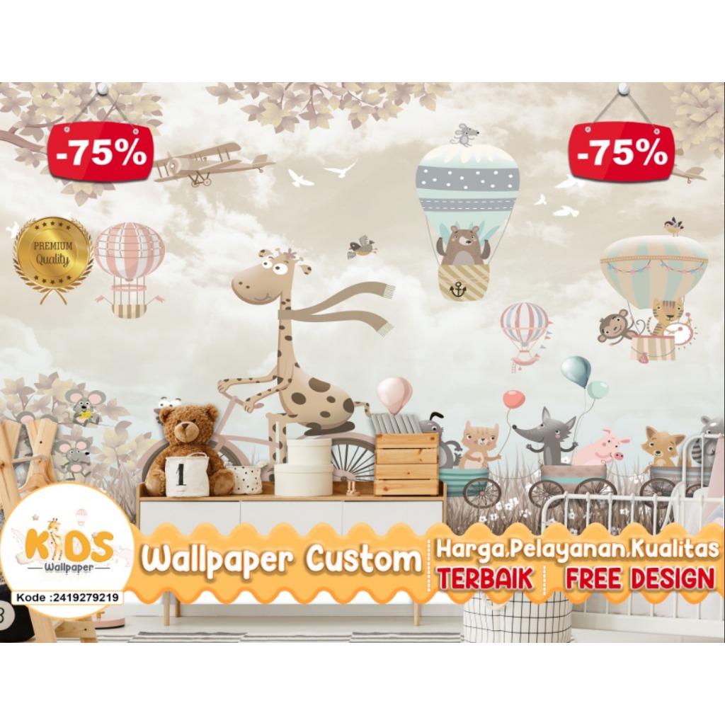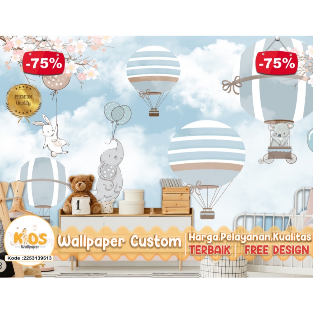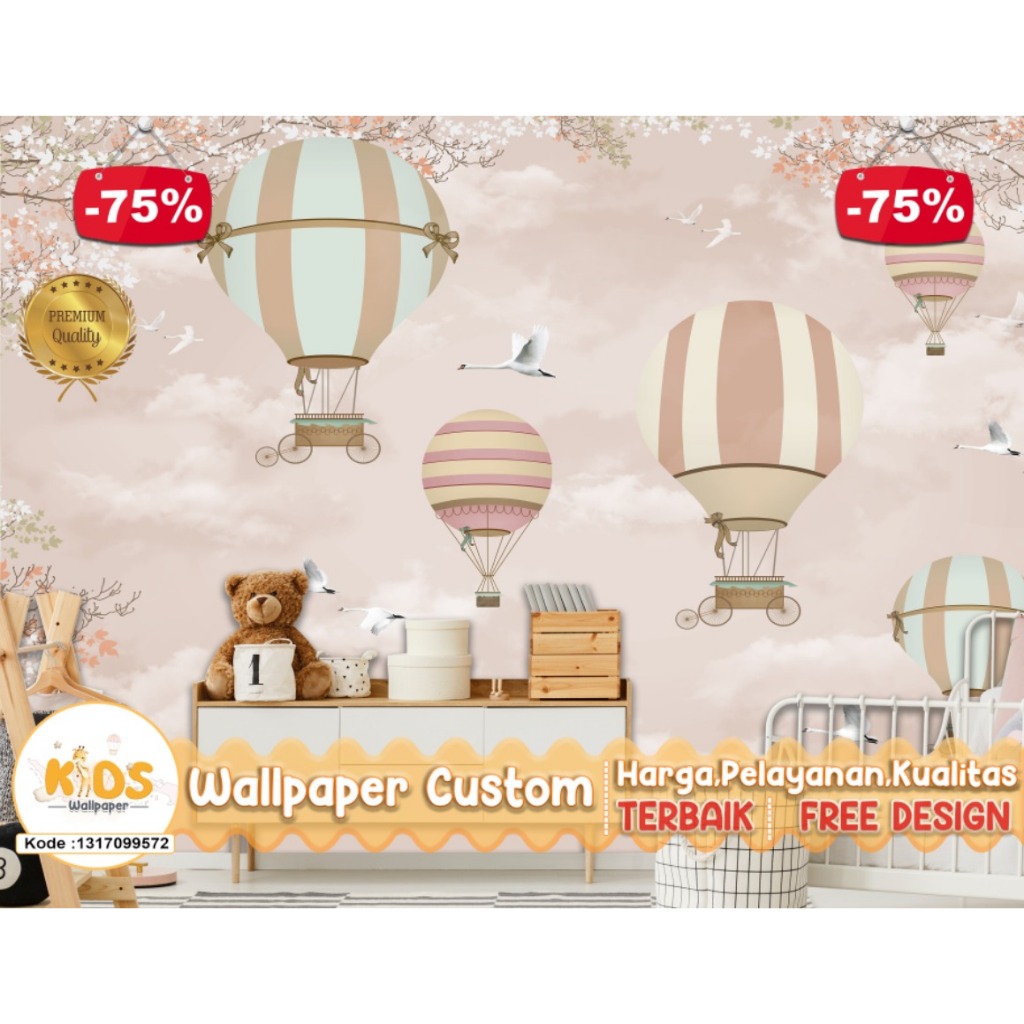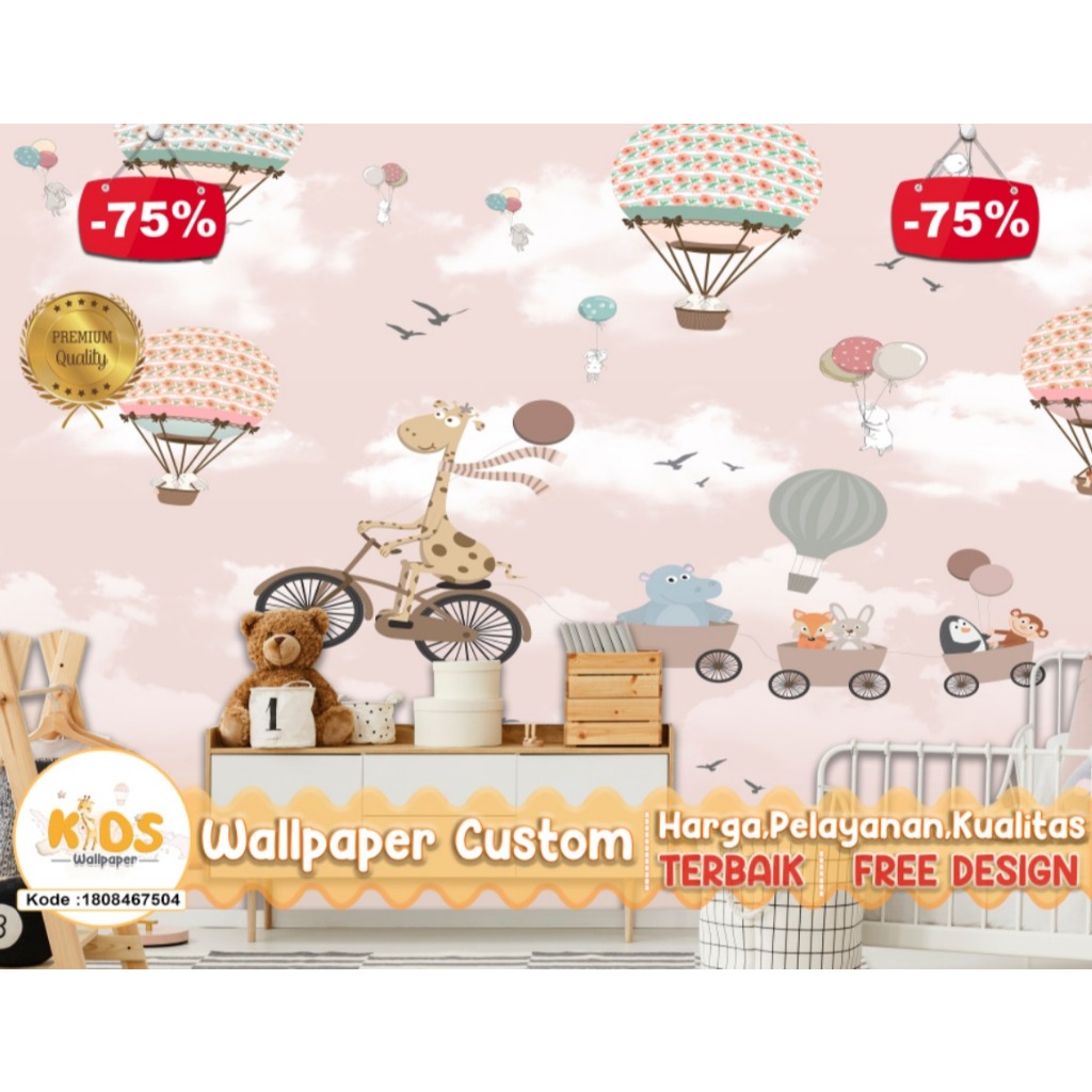 Wallpaper Custom 3D Tema Balon Udara | Kids | Pink | Pastel | Wallpaper Request Gambar | Wallpaper Kamar Tidur Anak | Wa