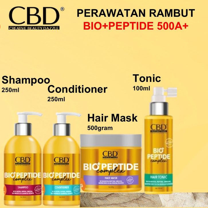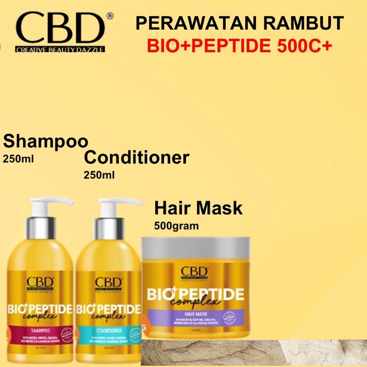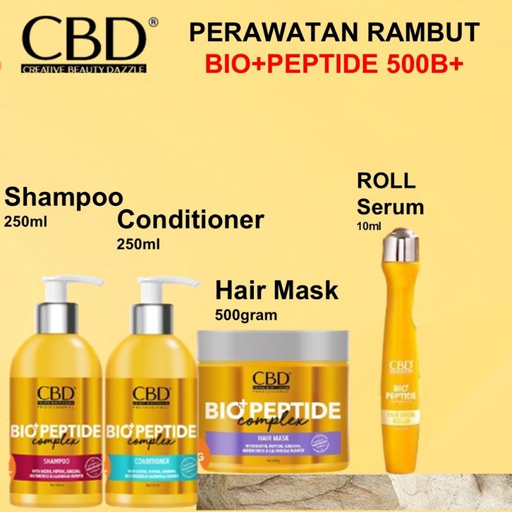Paket CBD Bio+ Peptide Complex Shampoo 250gr + Conditioner 250gr + Hair Mask 500gr 1/2/3 Pcs Bio+ CBD Peptide Complex S