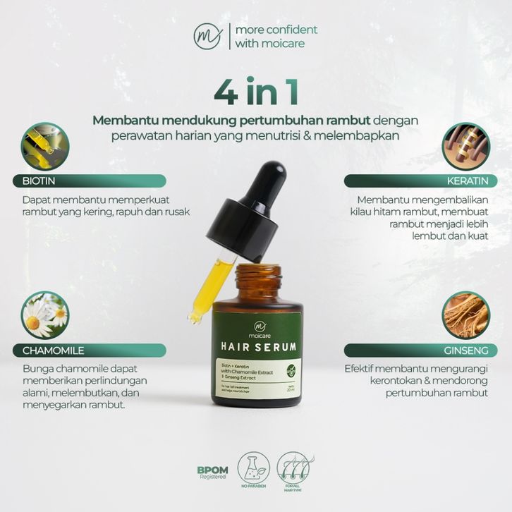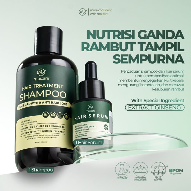 Paket Moicare Hair Serum + Shampoo – Penumbuh Rambut Tebal Sehat Mengkilap Anti Hair Fall with Ginger Extract Rosemary