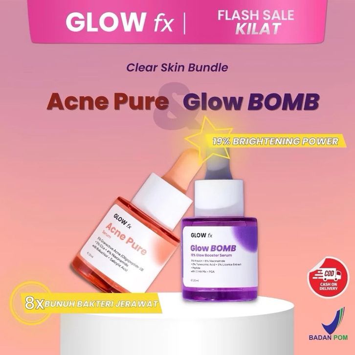 GLOW FX Glow Bomb Serum - Serum Glowing & Bekas Jerawat 19 Brightening Power / GLOW FX Acne Pure Serum - Serum Untuk Je
