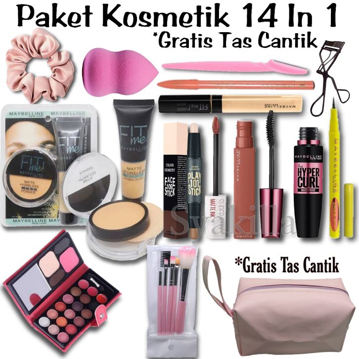 Paket Kosmetik Hemat 14 In 1 Free Tas Cantik / Paket Kosmetik Lengkap / Makeup Set Kecantikan