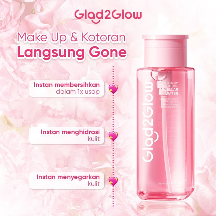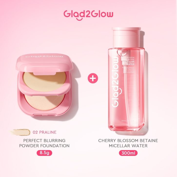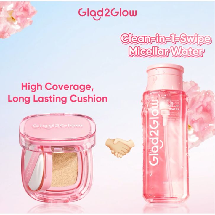Pre order Glad2Glow Paket 2pcs Set Cushion and Cherry Blossom Betaine Micellar Water 300mili Makeup Remover Pembersih