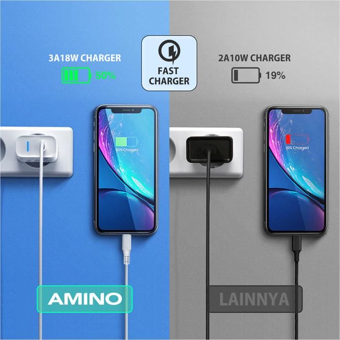 AMINO 3A 18W Fullset Adaptor Fast Charger 4A Type C Kabel /4A Micro USB Kabel / For Samsung Fast Charger / For OFFO Fas