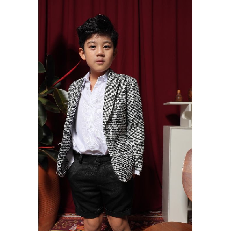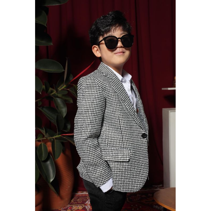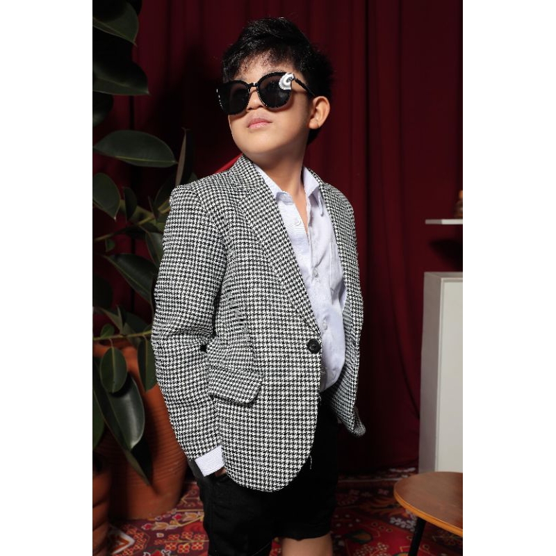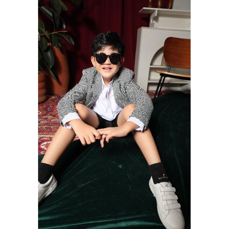 jas blazer anak casual Korean style bahan semiwool motif hitam putih