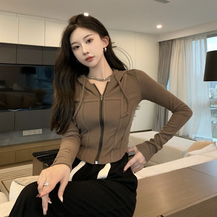 Hoodie ZIPPER BASIC Sweater Jaket Zipper Crop Top Hoodie Wanita Kekinian Fashion Outfit Ootd