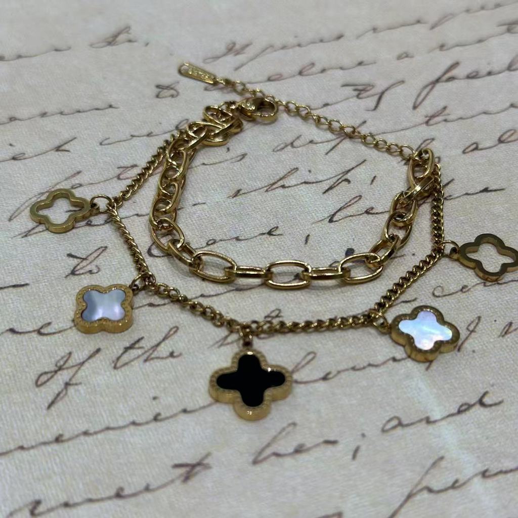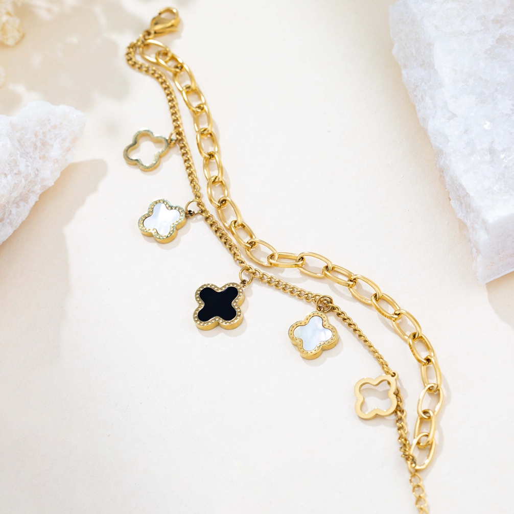 Aksesori Gemes - Double Layer Motif Bunga Semanggi & Kerang Putih