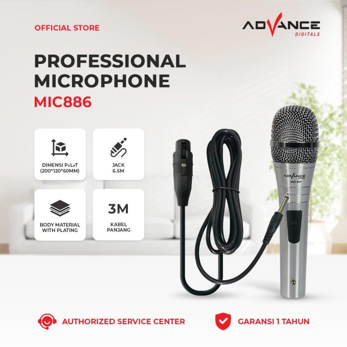ADVANCE Microphone Mic-886 Profesional Dynamic Mic Karaoke Silver - Hitam Garansi Resmi & 100% ORI