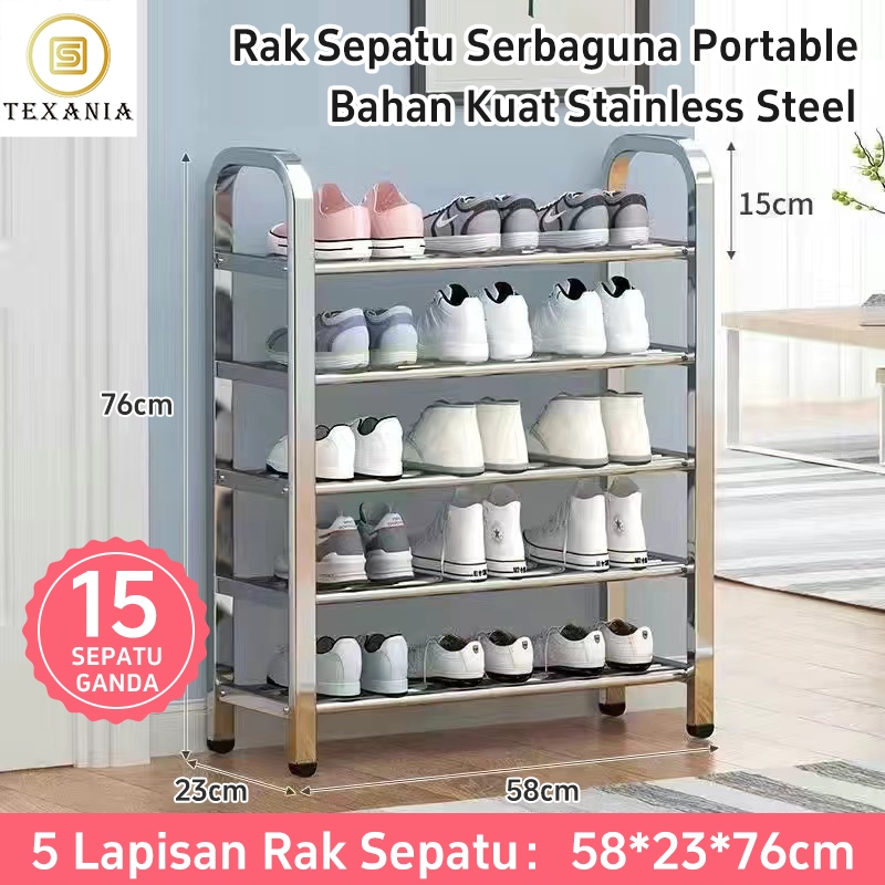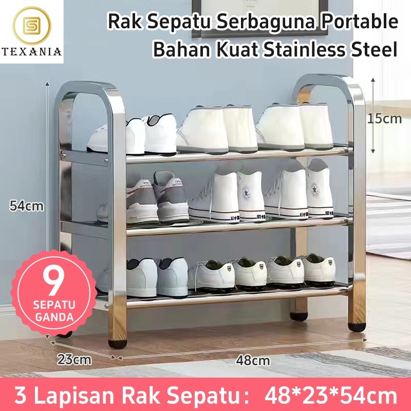 Rak Sepatu TEXANIA Stainless Steel Portable Anti Karat Multifungsi Berkualitas Modern Termurah Tahan Lama
