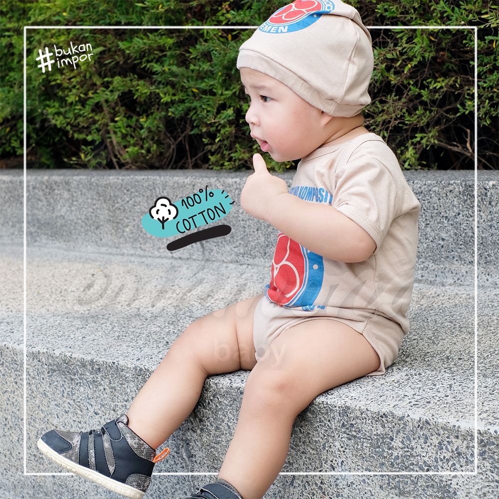 Ermon Baby - Jumper Bayi Laki Laki Perempuan Jumper Baby Cowok Cewek Lucu Model Semen Tiga Roda + Topi Usia 0 - 12 Bulan