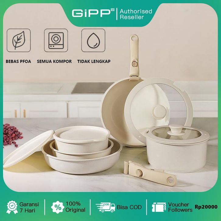 GIPP Set Peralatan Masak 3/5 /11 Buah, Set Peralatan Masak Antilengket, Pegangan Dapat Dilepas, Peralatan Masak Dapur I