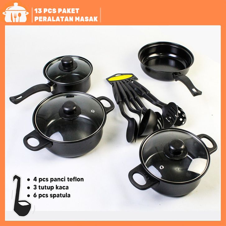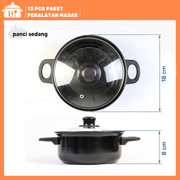 Cookware Panci Set Wajan Penggorengan Spatula Set Isi 13Pcs 1 Set Frypan Saucepan