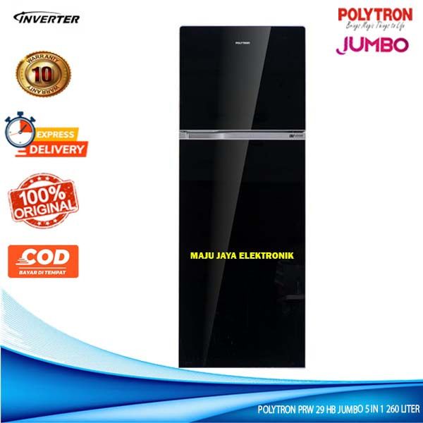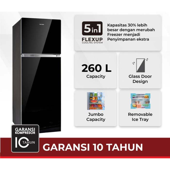 Kulkas 2 Pintu POLYTRON PRW 29 HB Flex Up 5 In 1 JUMBO Glass Door INVERTER 260 Liter