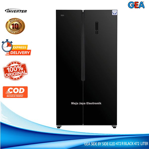 Kulkas SIDE BY SIDE GEA G2D 472 BLACK GLASS DOOR 472 Liter Inverter