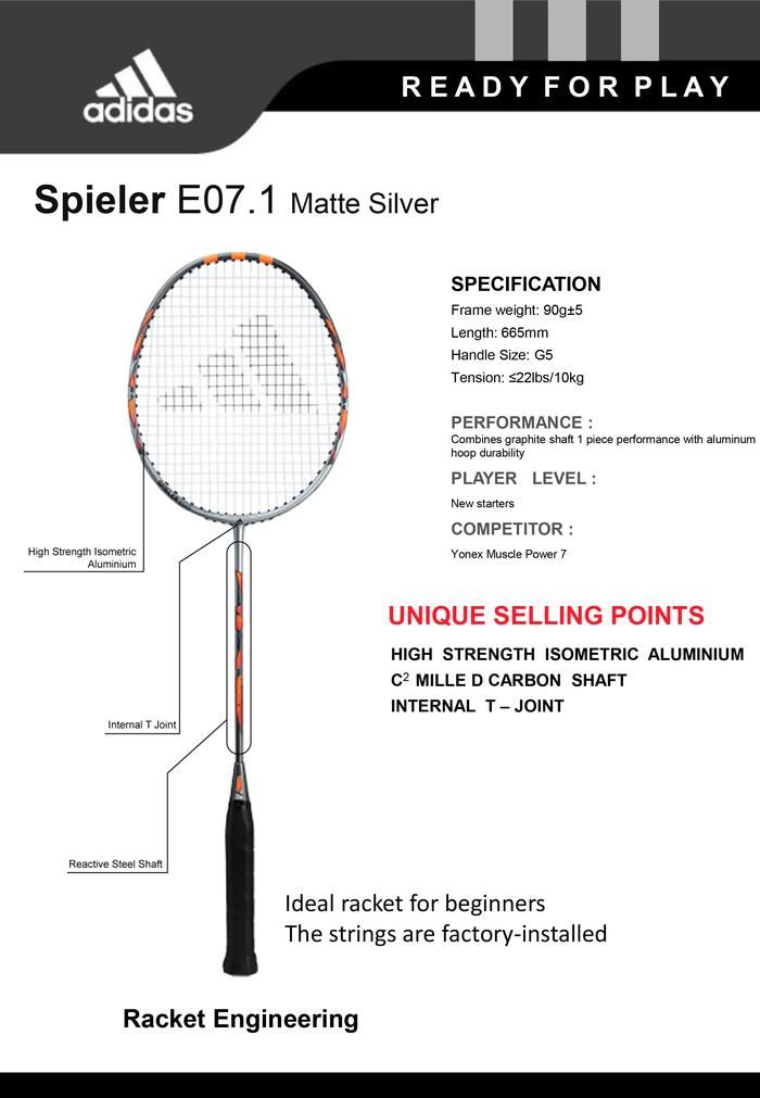 Raket Bulutangkis Badminton Adidas Spieler E07.1 Matte Silver Raket Badminton Original