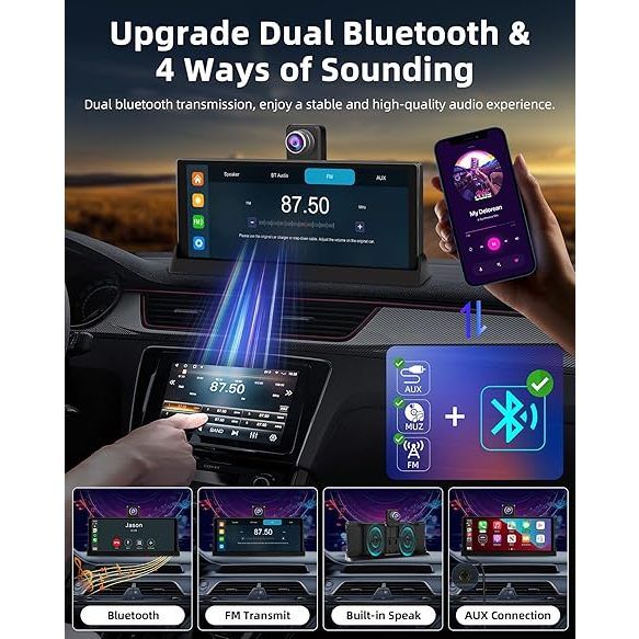 10.26inch Mobil CarPlay Screen & 4K Dash Cam 360 Rotatable Lens Camera Portable Android Auto Car Stereo, Car Audio Rece