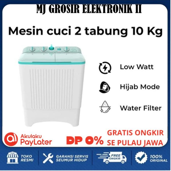 GRATIS ONGKIR POLYTRON Mesin Cuci 2 Tabung Giant Series Hijab 10 KG - PWM 1076G AQUA SHARP Official