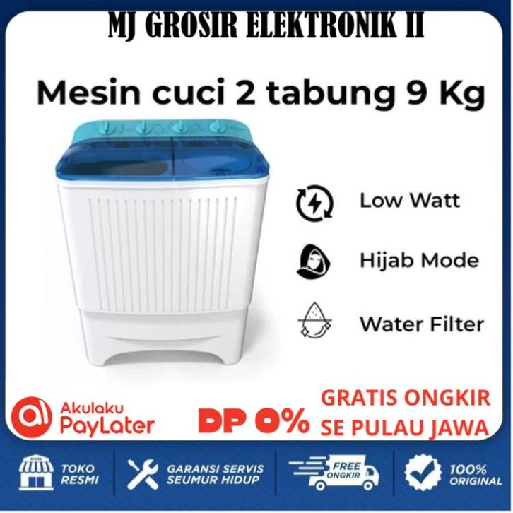 GRATIS ONGKIR POLYTRON Mesin Cuci 2 Tabung Primadona Giant 9Kg PWM 9072B AQUA SHARP Official