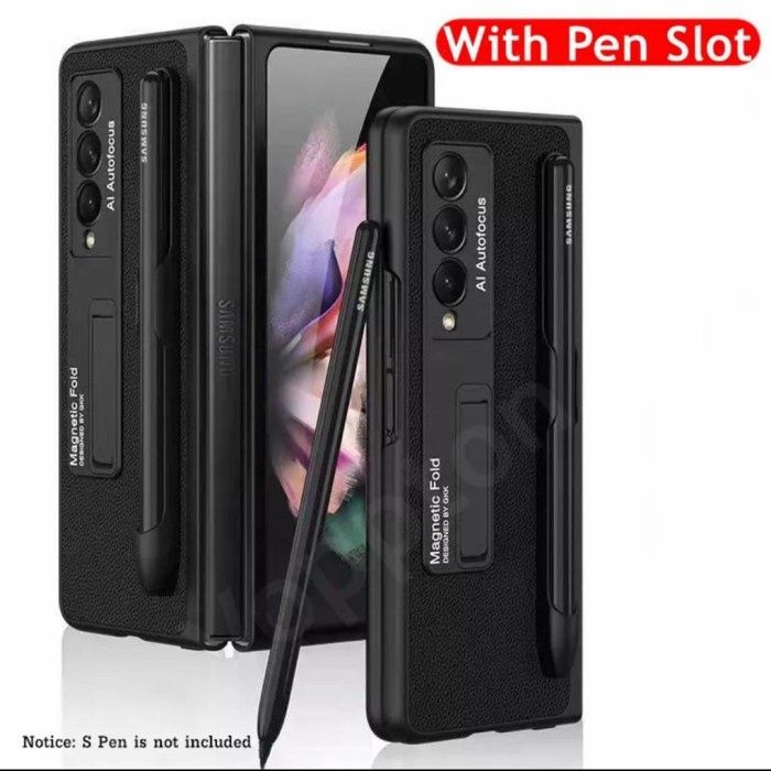 Case Samsung Galaxy Z Fold 3 5G Leather With Holder + Pen Slot GKK Original Case
