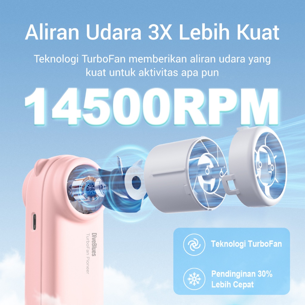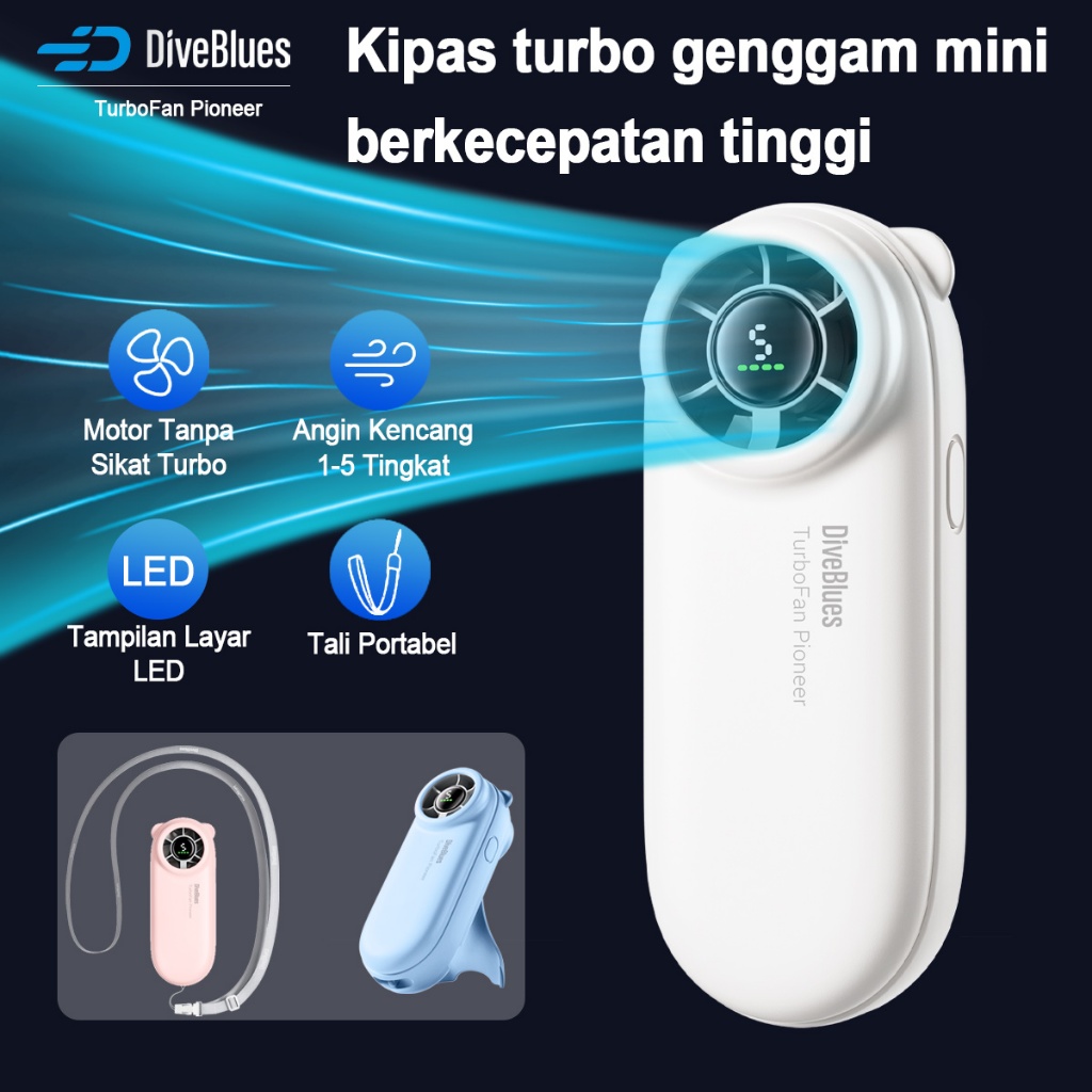 Kipas Angin Turbo Mini Kipas Strong Wind Semikonduktor Turbo Genggam Fan 5 Gear Wind Speed DiveBlues