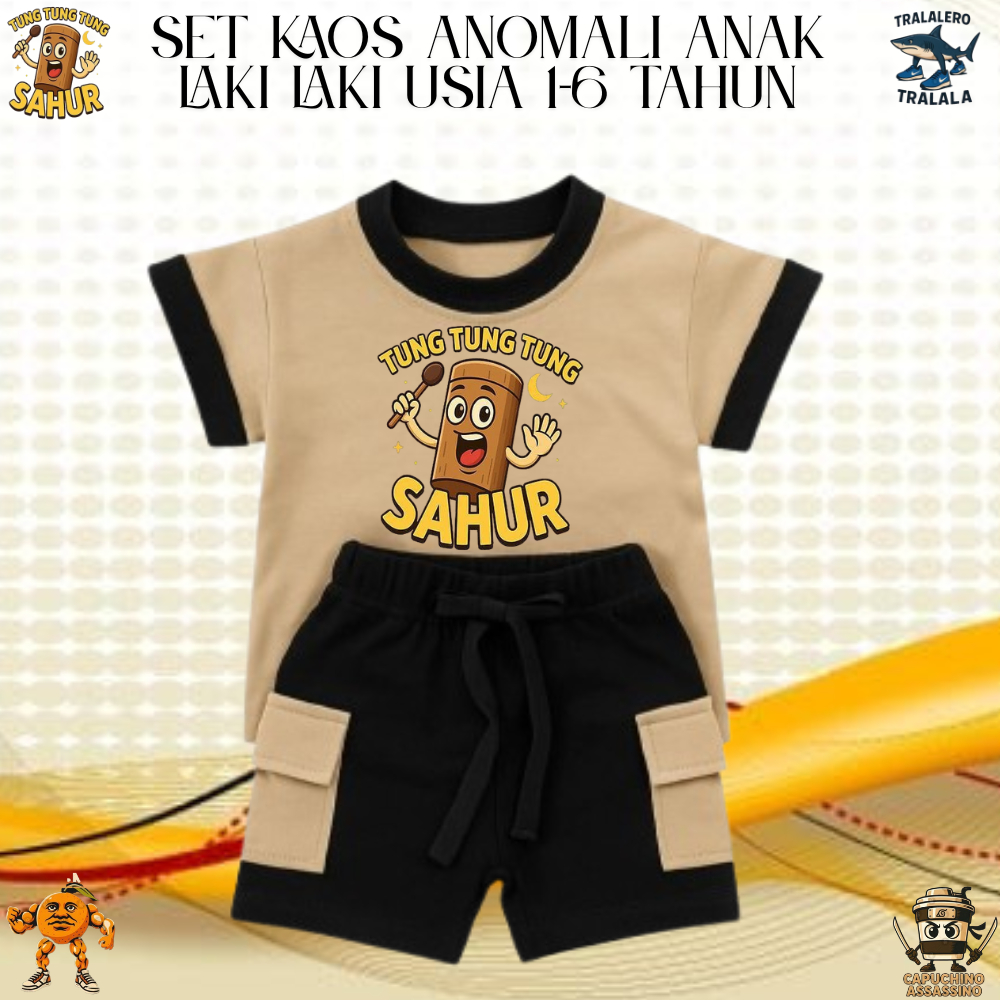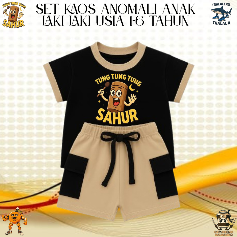 ANOMALI BAJU SETELAN ANAK LAKI LAKI TUNG TUNG SAHUR USIA 1-6 TAHUN