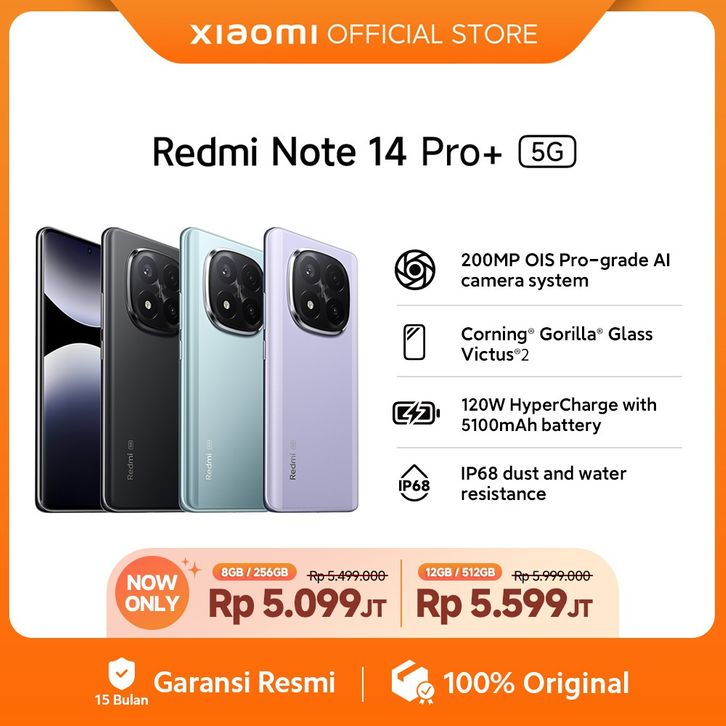 Xiaomi Redmi Note 14 Pro + 5G | 200 MP OIS Pro grade AI Camera System | 120W HyperCharge | Official Store HP Terbaru