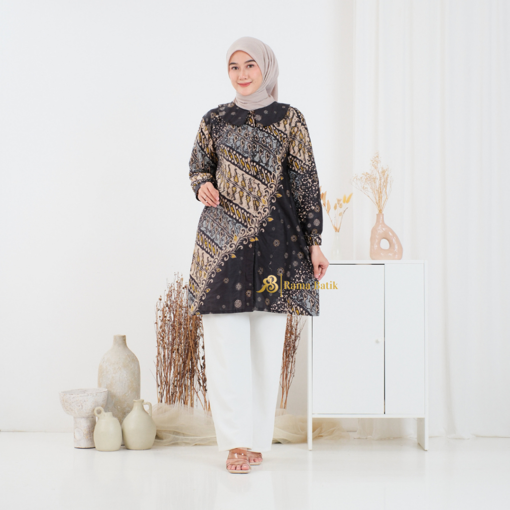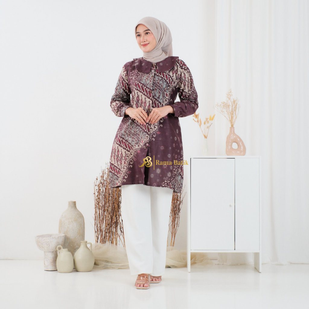 Batik Couple Terbaru Baju Batik Couple Modern Pasangan Seragam Lengan Panjang Busui Motif Fuji