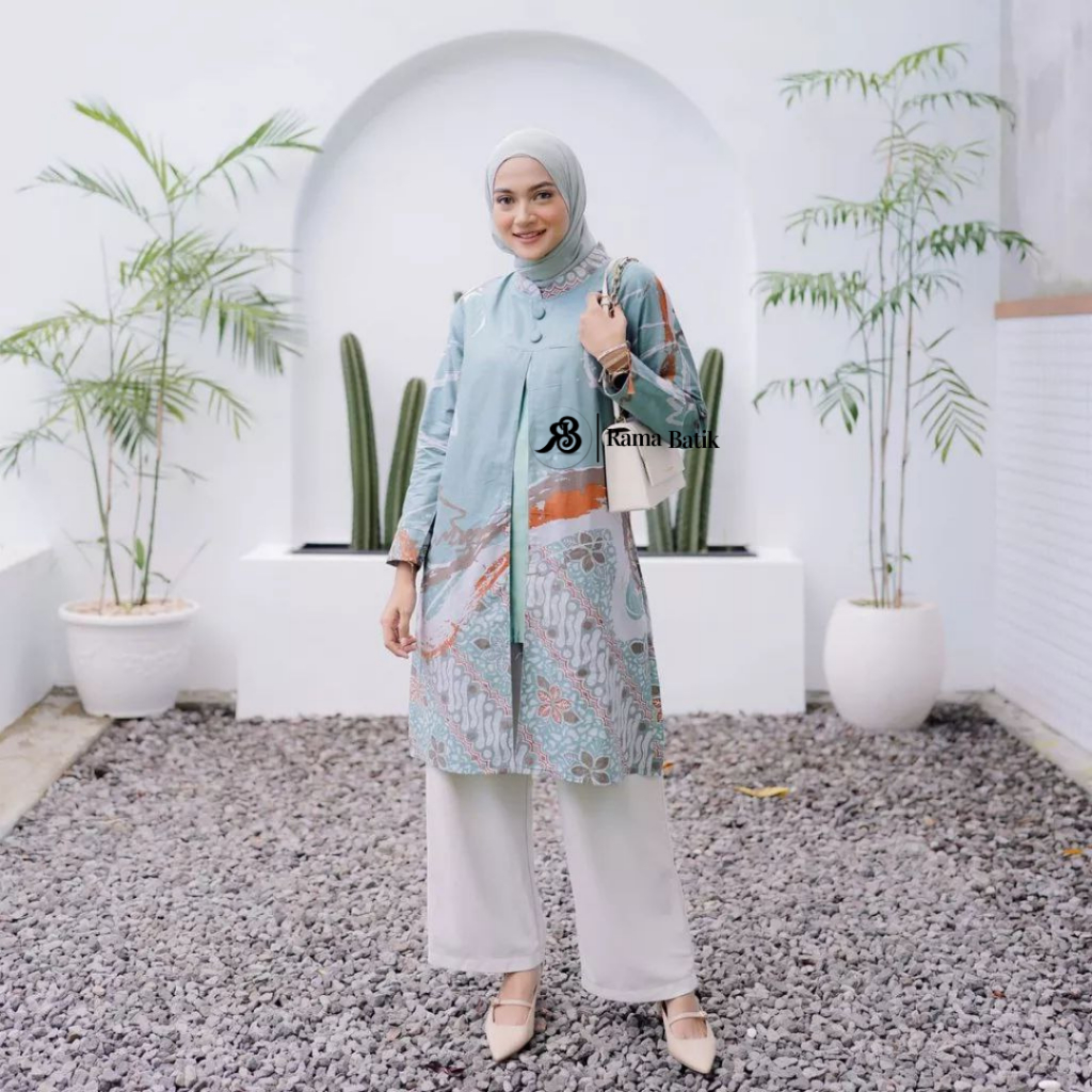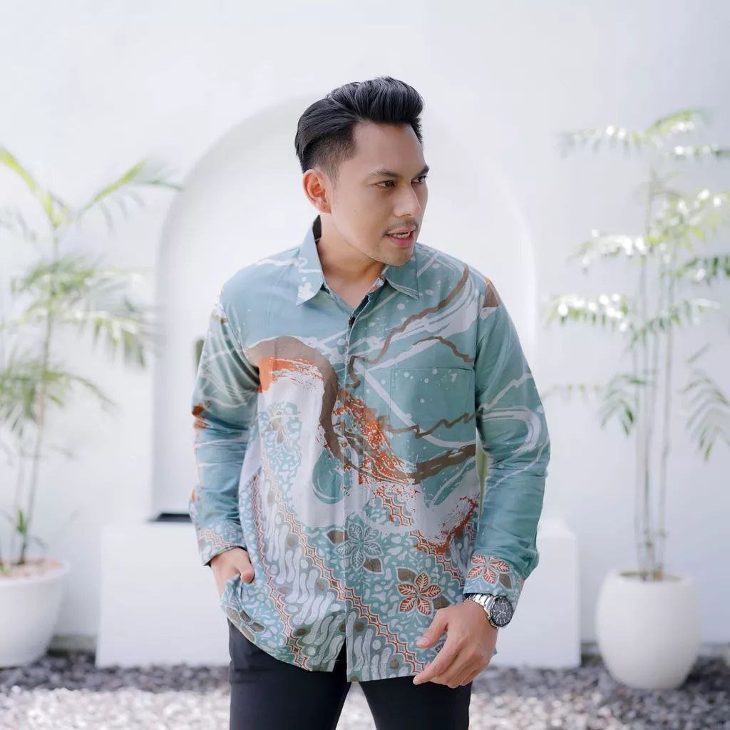 Batik Couple Terbaru Baju Batik Couple Modern Abstrak Sage