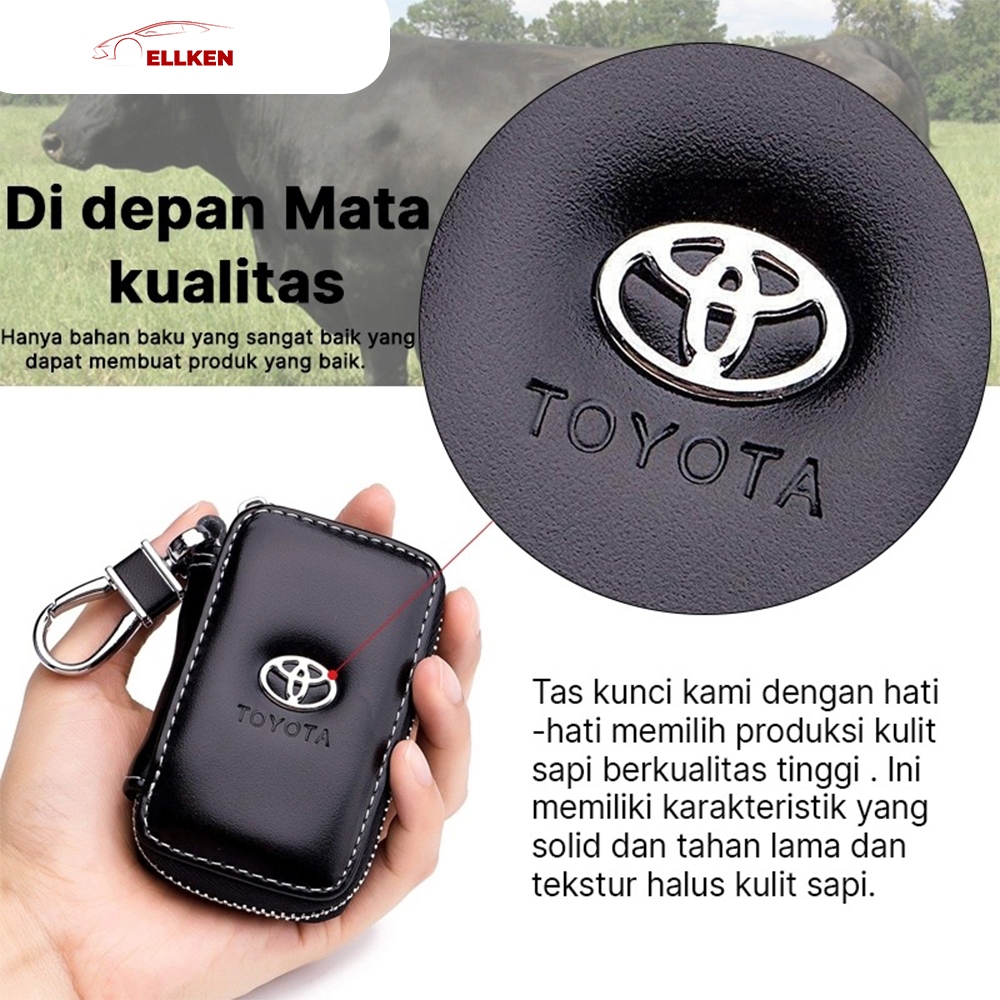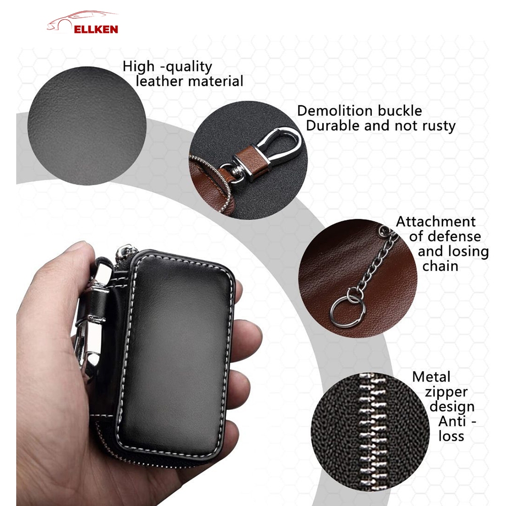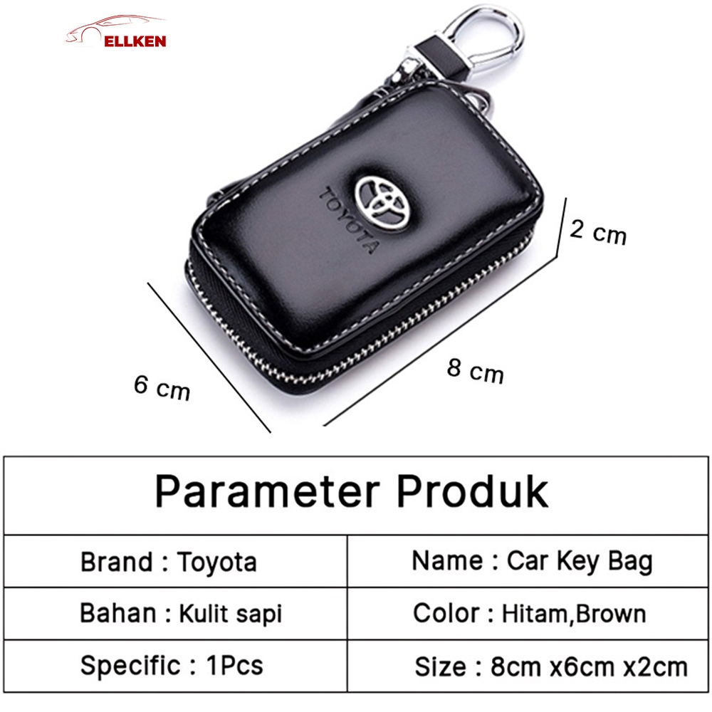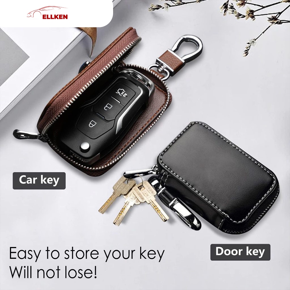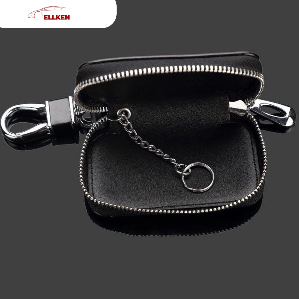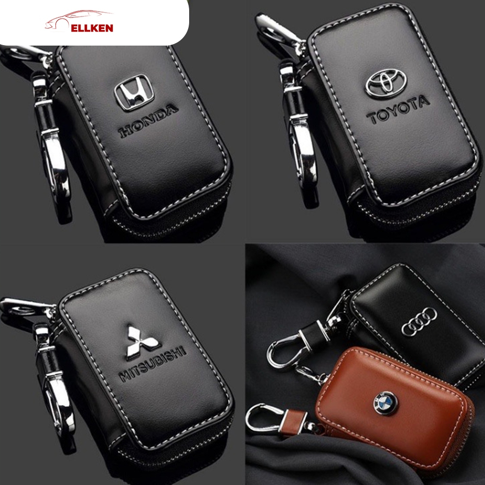 ELLKEN Gantungan Kunci Mobil / Motor LOGO Sarung Cover Dompet Kunci Mobil STNK Merk Hitam Zipper