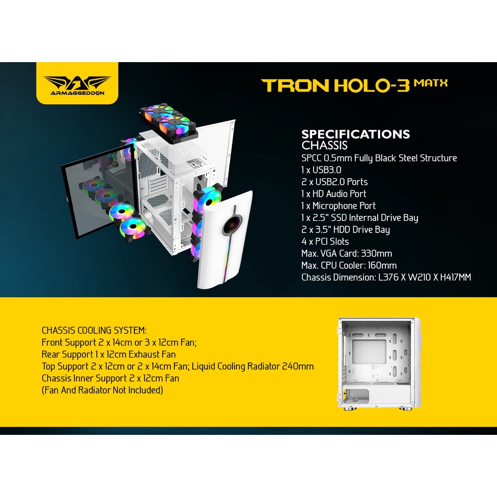 Casing PC Gaming Armaggeddon Tron Holo 3 Micro ATX RGB Holographic