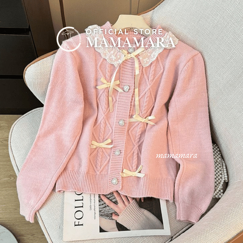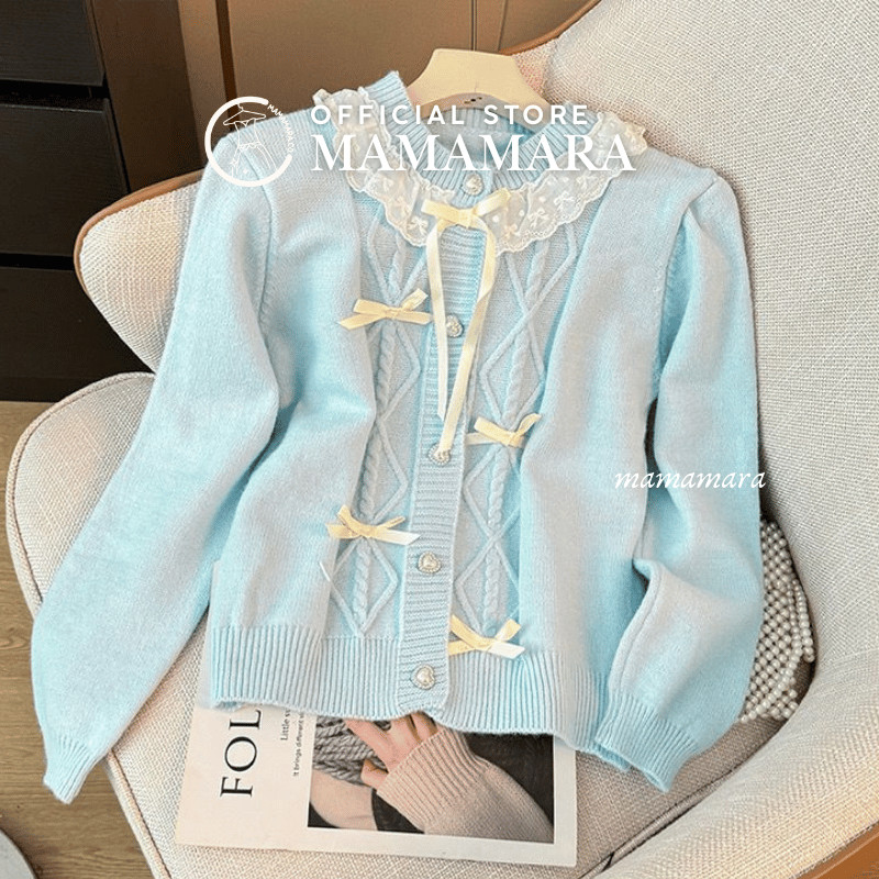 Kardigan Rajut Mamamara Sisca Pita Imut Pastel Lembut Casual Knitwear Santai