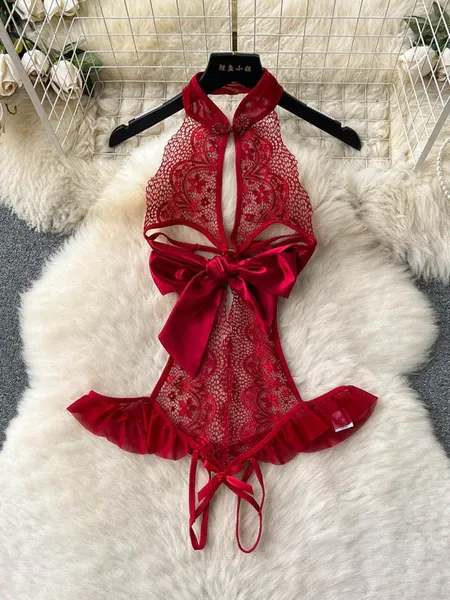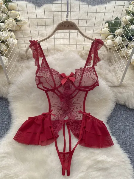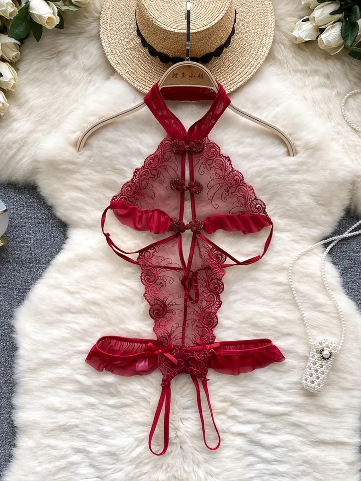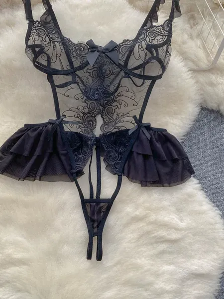 FREE ONGKIR Lingerie Sexy Open Crotch Murah Renda Bordir transparan Bodysuit A572