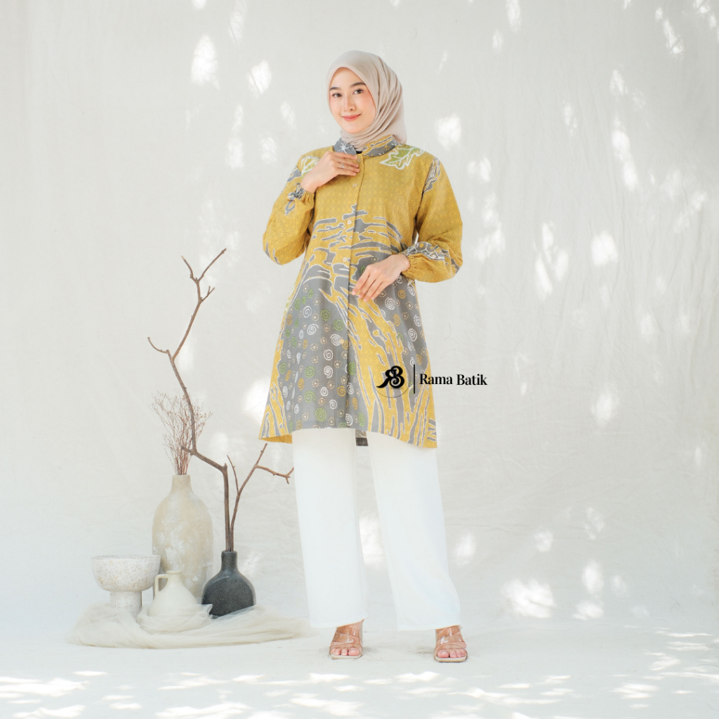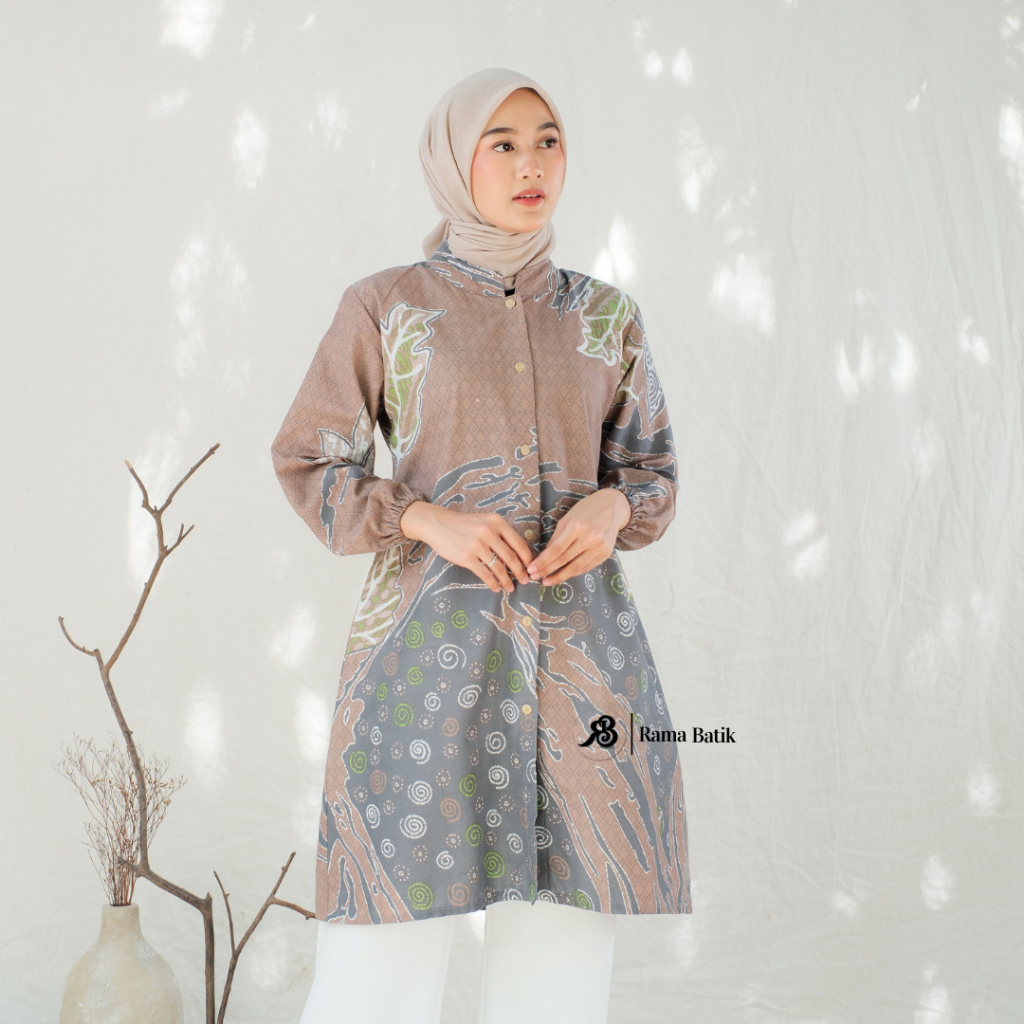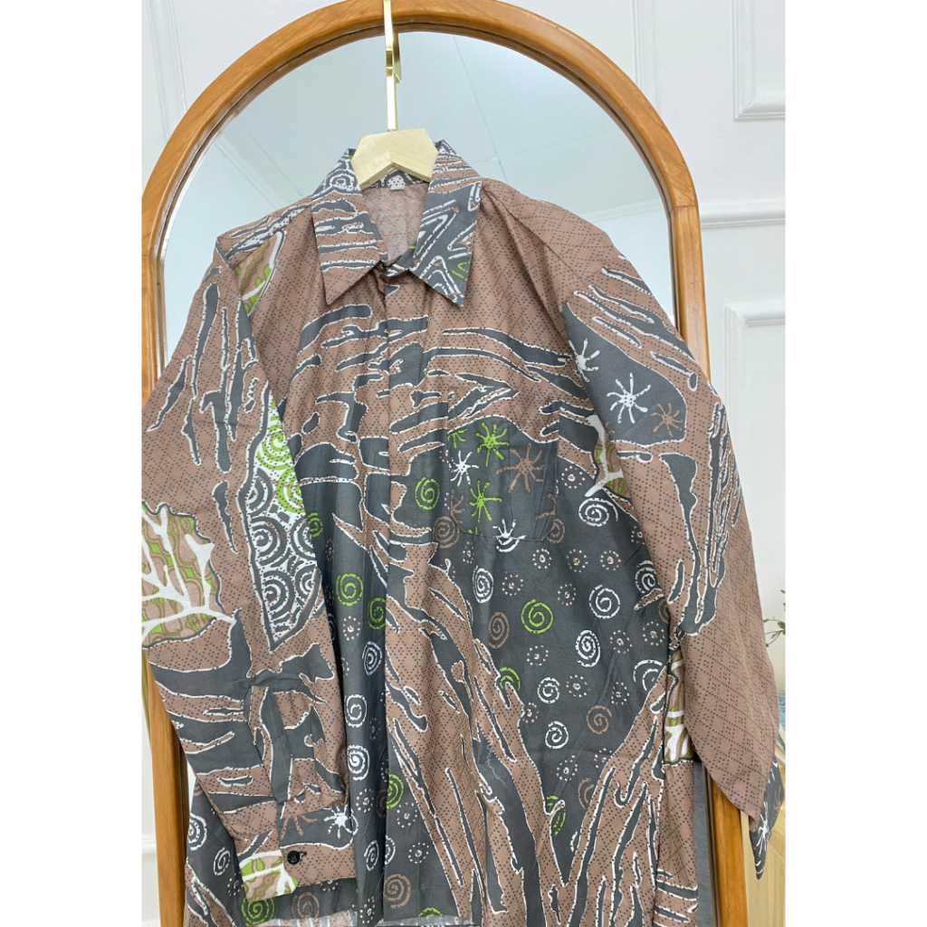 Batik Couple Terbaru Baju Batik Couple Modern Tunik Kancing Lengan Karet Motif Abstrak Setelan Kondangan