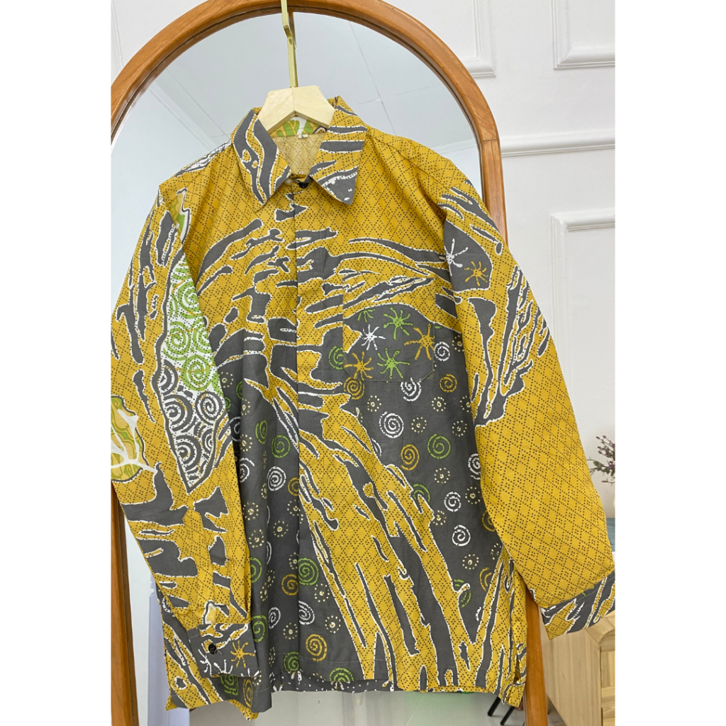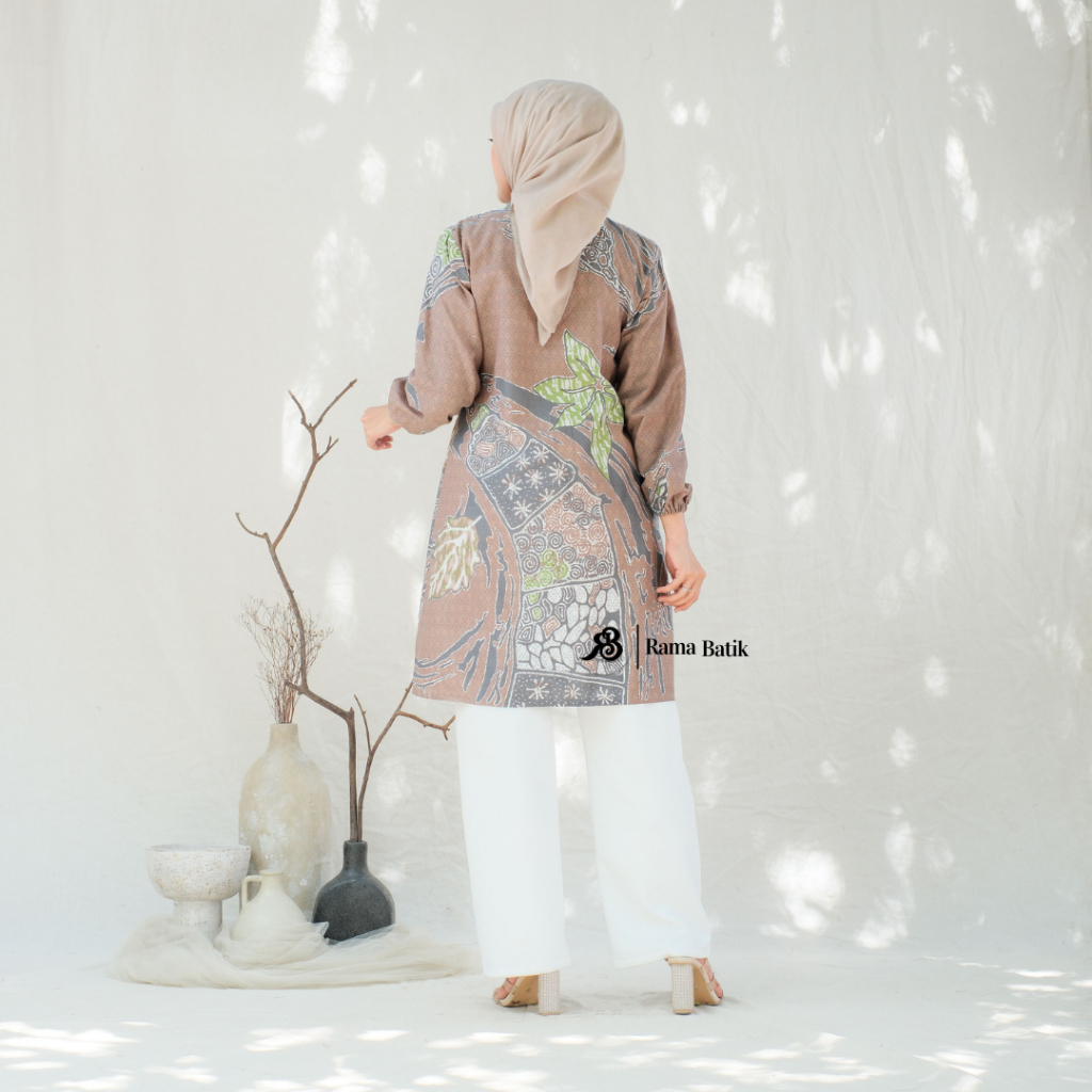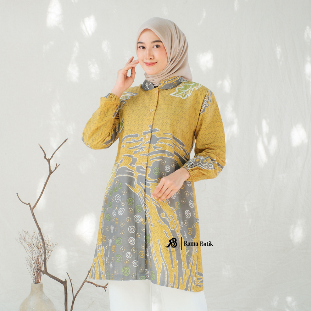 Batik Couple Terbaru Baju Batik Couple Modern Tunik Kancing Lengan Karet Motif Abstrak Setelan Kondangan
