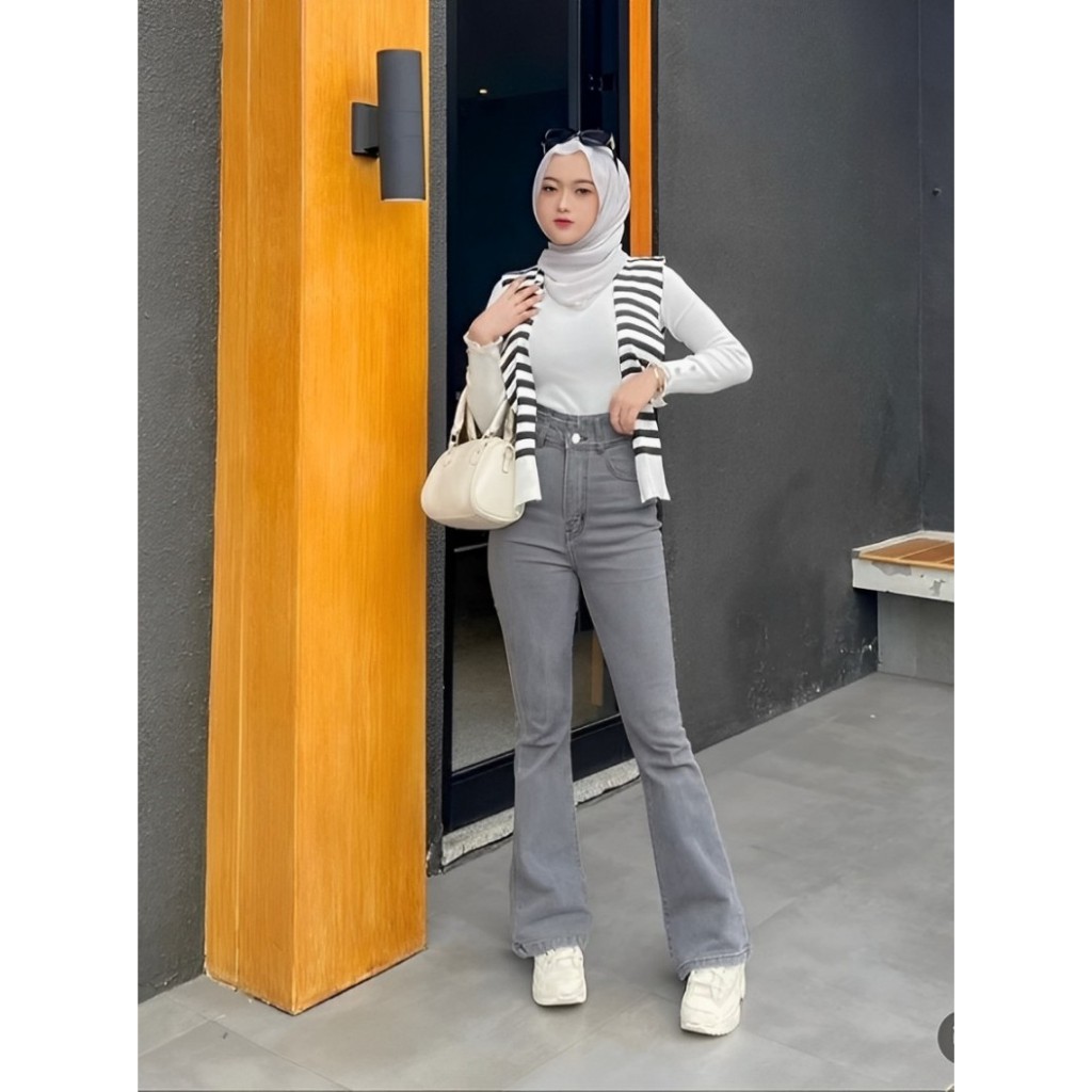 (Gratis Ongkir) HW Cutbray Jeans Wanita - Celana Cutbray Strecht Kekinian - Cutbray Flared Streetch Premium Quality