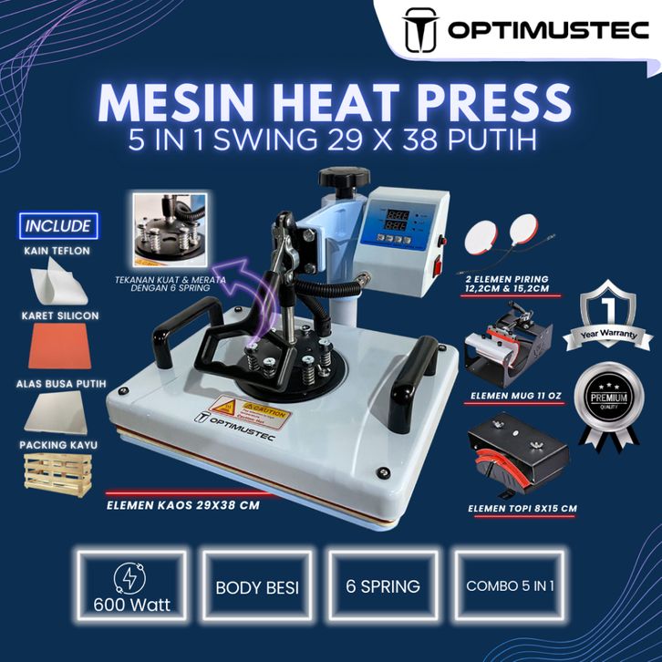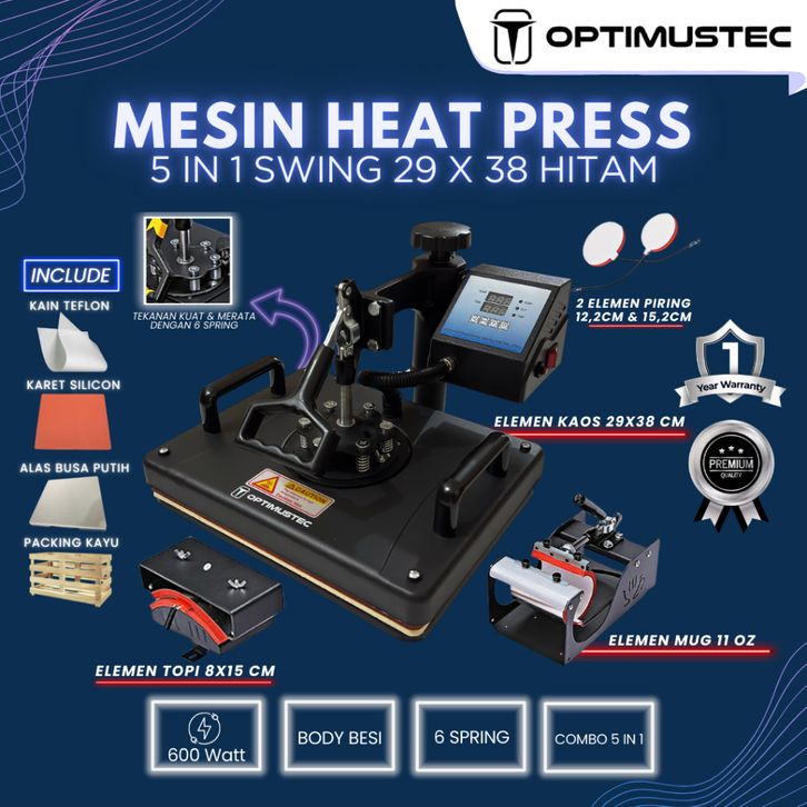 Murah OPTIMUSTEC Mesin Press Sablon Kaos Swing 29X38 3in1 5in1 9in1 All Varian Elegan