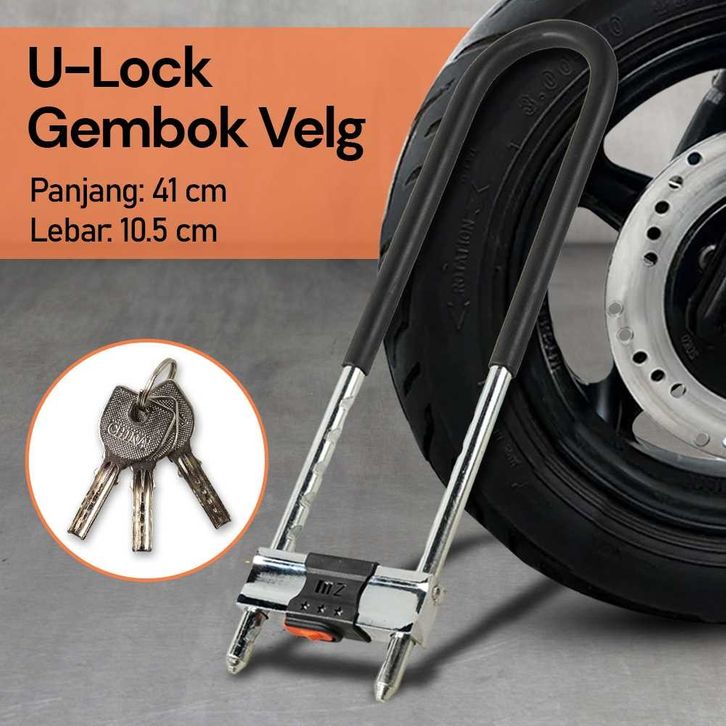Kunci Gembok Motor Kunci Gembok U-Lock Panjang Velg Ban Motor Sepeda Safety Steel Anti Maling 410mm 335mm 902B Keamana