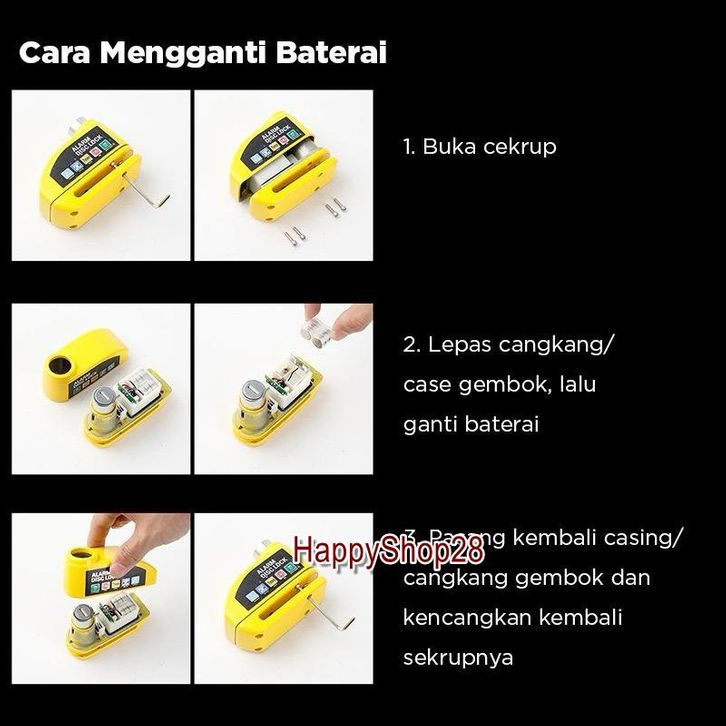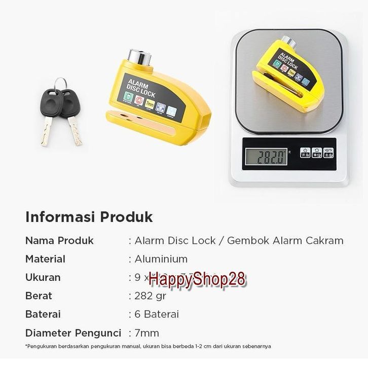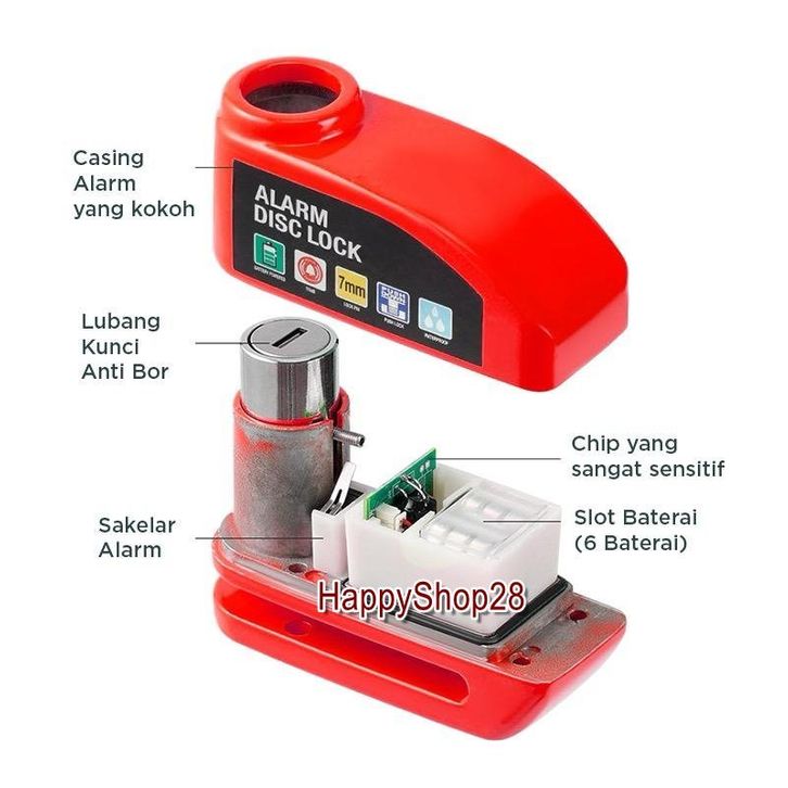 Kunci Gembok Motor Gembok Cakram Motor Alarm Anti Maling Premium / Gembok Motor Alarm Anti Maling Baterai