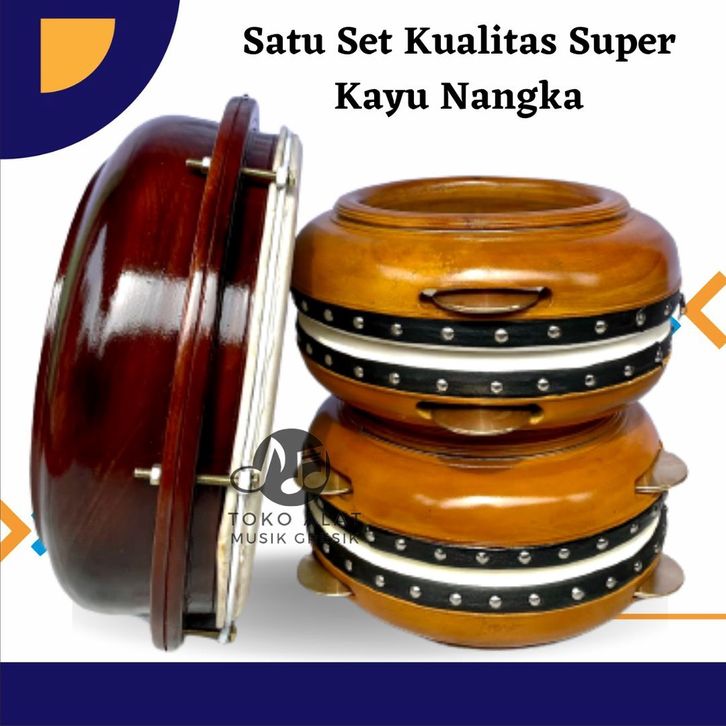Rebana Hadroh Kualitas Super Kayu Nangka Satu Set Bas Banjari Terbangan Jepara Kompang Terbang Alat Musik Trdaisional