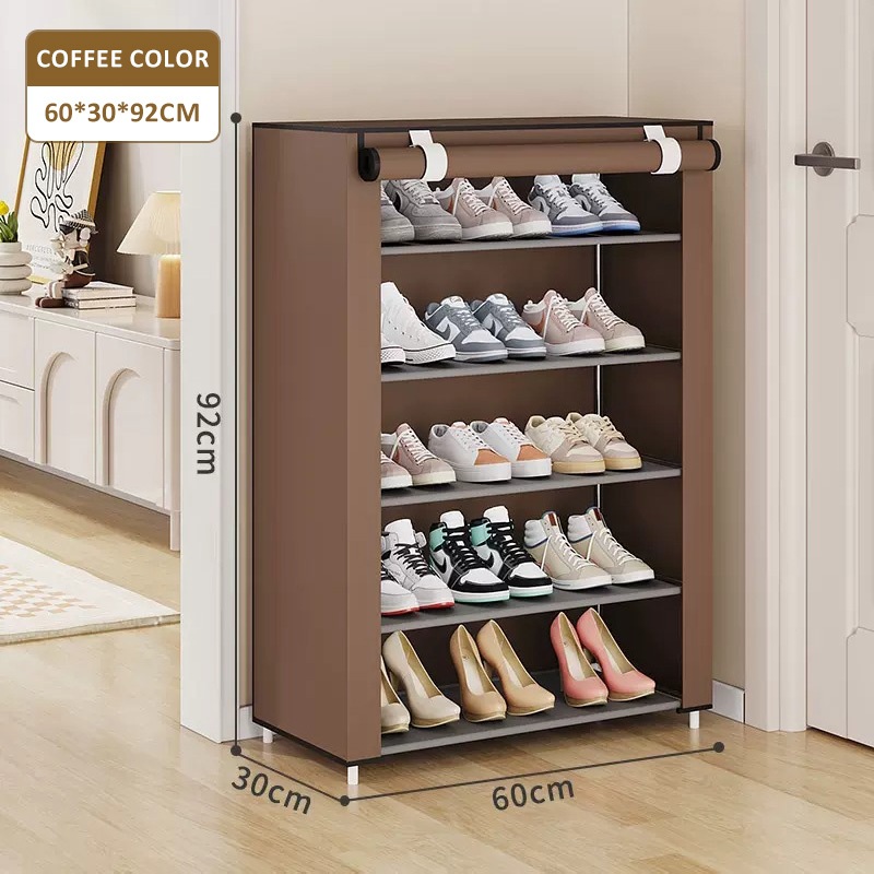Rak Sepatu 6 Tingkat + Cover Debu Multifungsi Murah Tahan Lama Berkualitas - Rak Sepatu Model Sekarang Modern