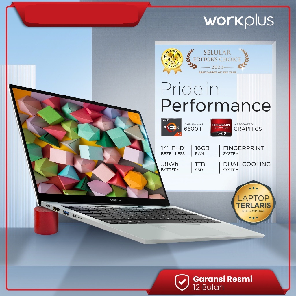 [Mall]ADVAN Laptop Workplus AMD Ryzen 5 6600H | Ryzen 7 7735HS | 16Gb/512Gb 1TB | 14'' FHD IPS | Fingerprint | Windows11