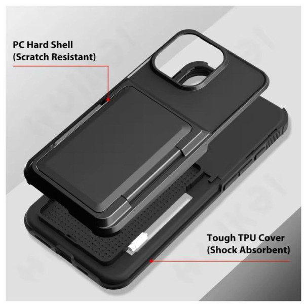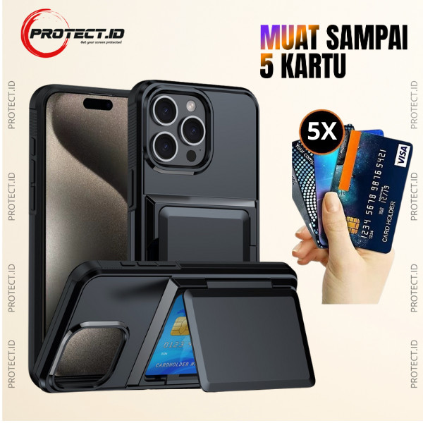 Wallet Case Black Alloy Magic Door TPU Card Case Versus Hardcase iPhone Multifungsi Casing Hp Kartu For iPhone 11 12 13