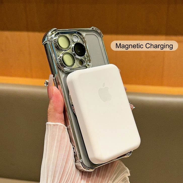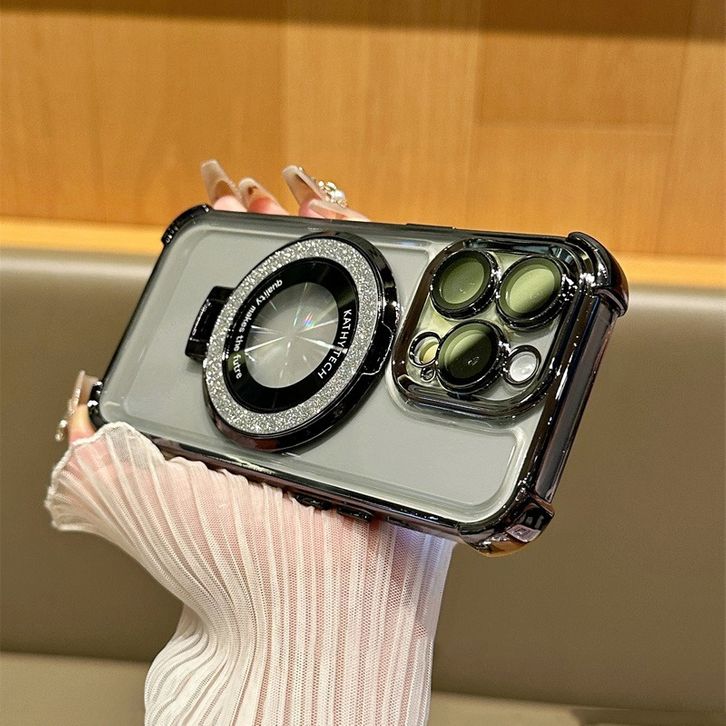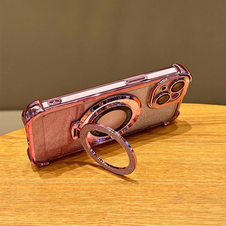 Glitter MagSafe Magnetic Bracket Airbag Anti-Fall Phone Case for iPhone 16 15 14 Pro Max Plus 13 12 11 Pro Max Wireless