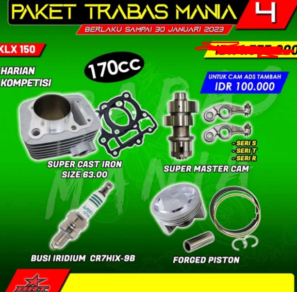 PAKET BORE UP TRABAS BRT KLX 150 Dtracker 150 Blok & Noken As Cam BRT KLX MANIA 4 170cc FREE BUSI