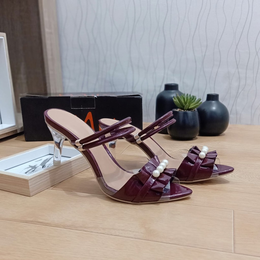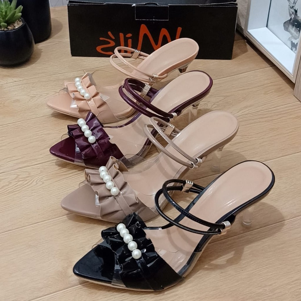 (Gratis Ongkir) High Heels Wanita / Sandal Pesta / High Heels Kaca Mutiara Deretutiara Deret