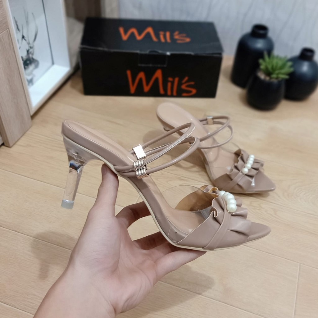 (Gratis Ongkir) High Heels Wanita / Sandal Pesta / High Heels Kaca Mutiara Deretutiara Deret