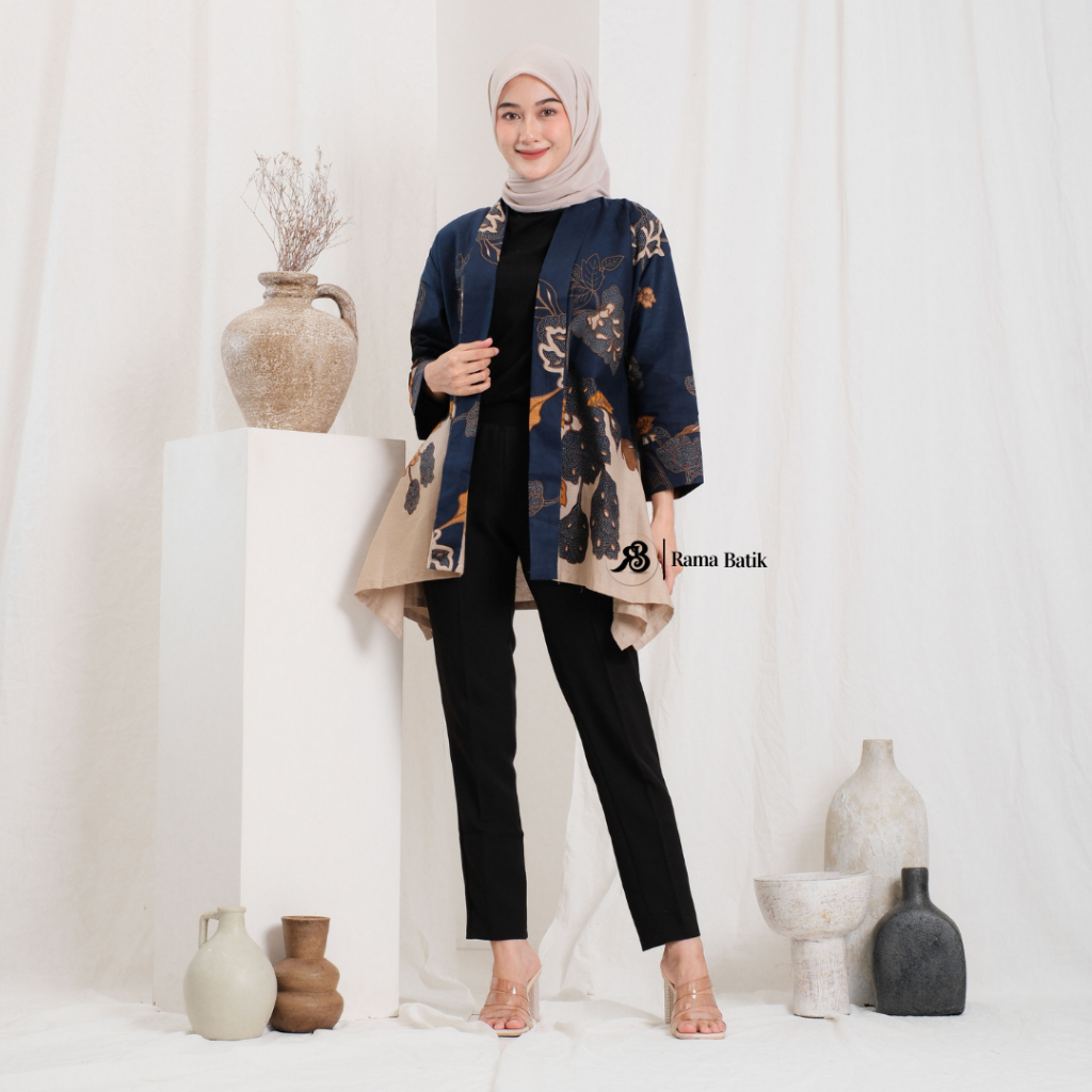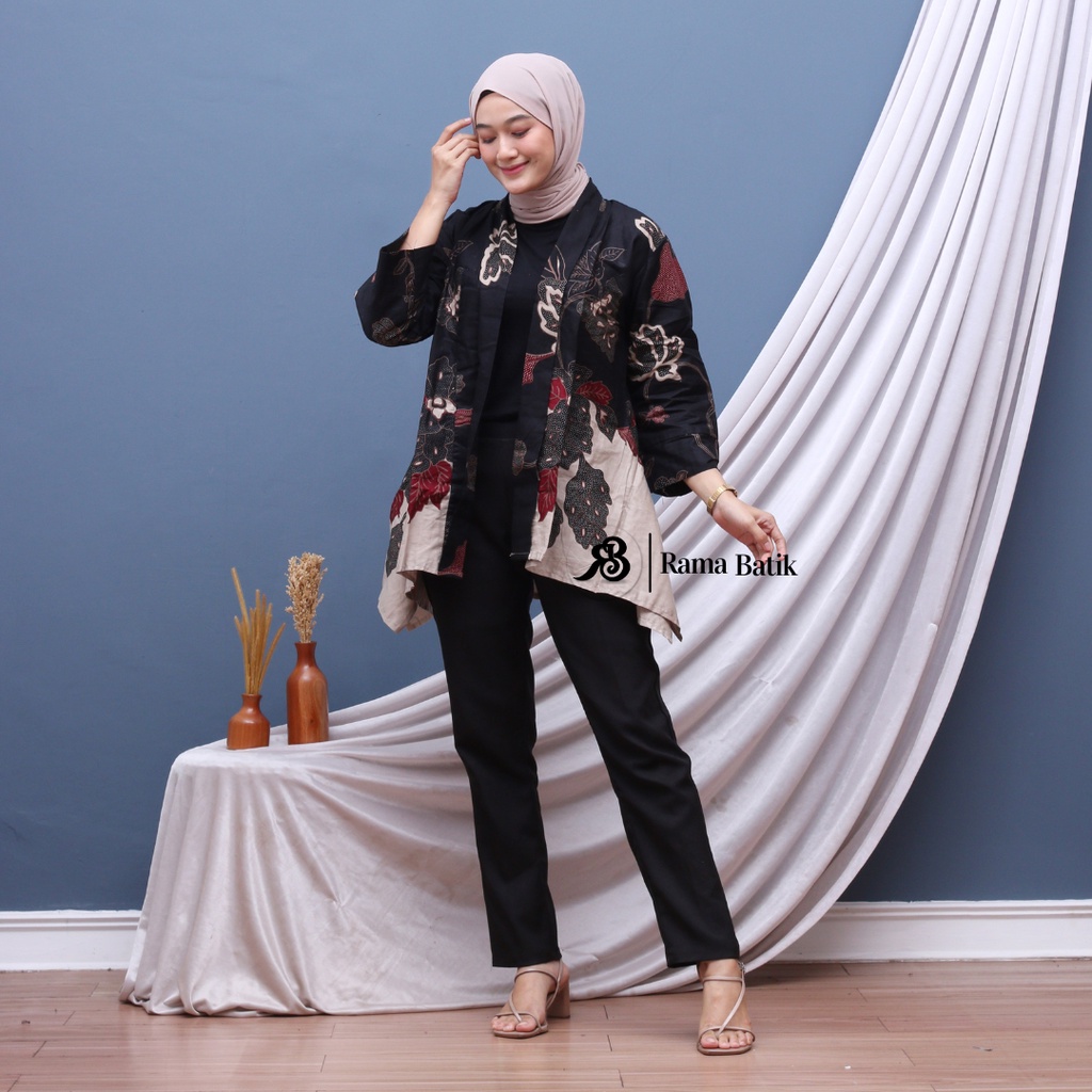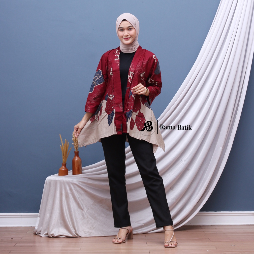 Blazer Batik Atasan Wanita Outer Batik Modern Motif Mawar