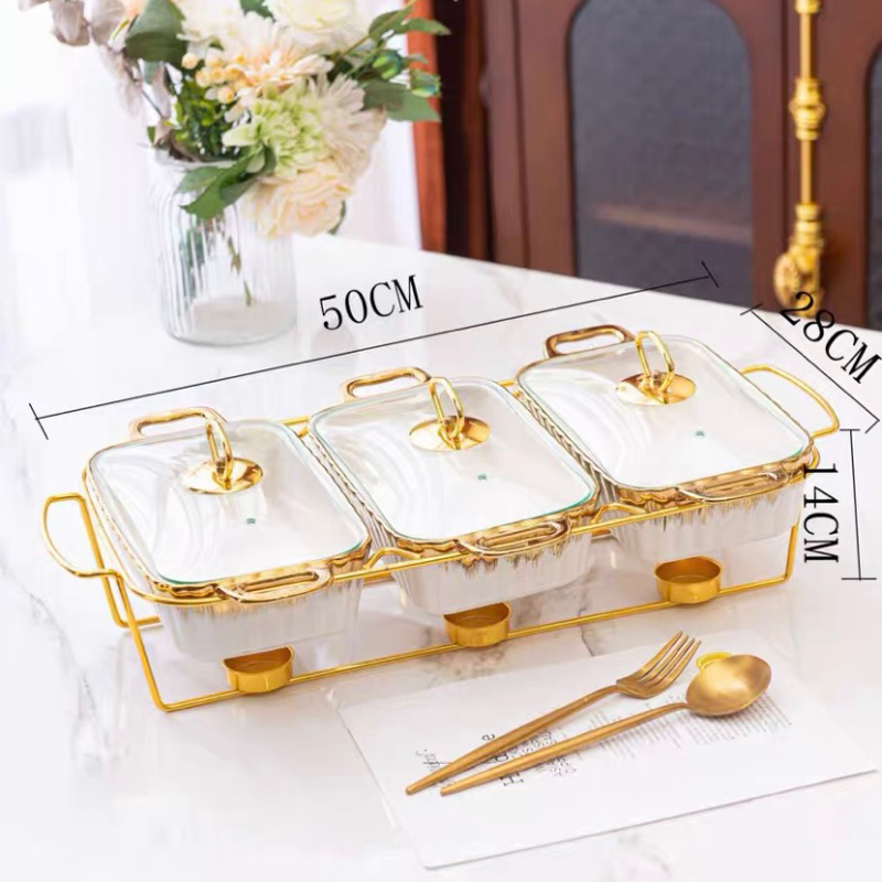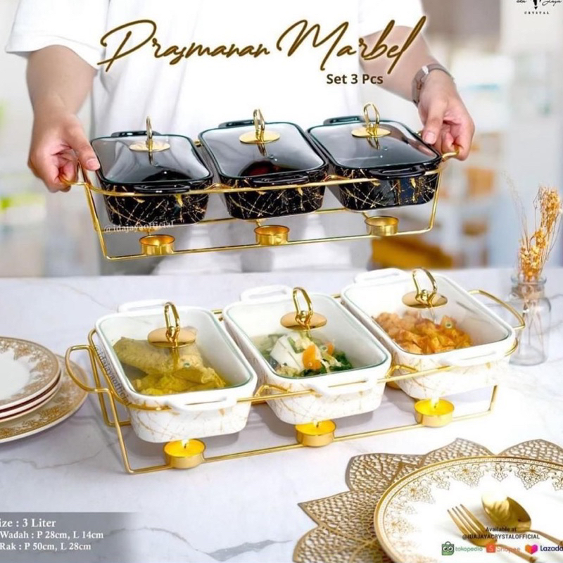 prasmanan keramik set isi 3 gold mewah prasmanan keramik marble / prasmanan raya cantik elegan termurah promo terbatas!